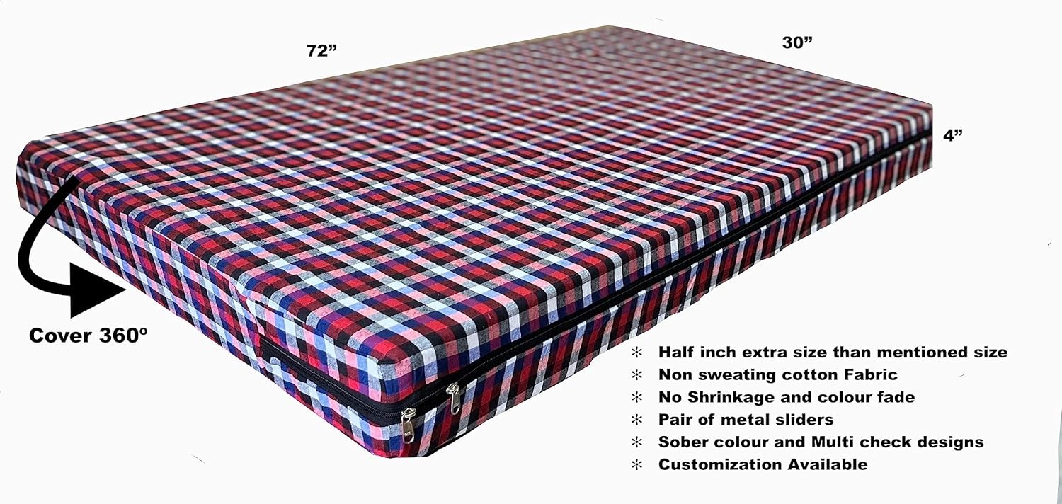 Cotton mattress covers made of heavy , non shrinkable fabric which Makes your mattresses more comfortable. It covers all the sides of mattress. Zip across length makes it Easy to remove and cover .Heavy fabric, Superior quality chain with pair of metal locks , Inside stitches interlocking makes it lifelong .These covers are one inch bigger on both sides than the size mentioned so same size of covers can be ordered for same size of mattresses.Contact seller for colour choice OR For size customisation .Pack of 1