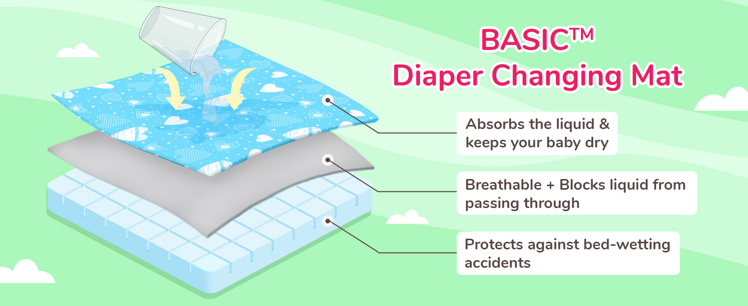 Super Soft & Non-Irritating – BASIC Bed Protecting Mat is made of Premium Quality Cotton Fleece fabric. Super soft & gentle on the baby’s delicate skin. Unlike other mats, it does not generate heat and prevents the baby from sweating.