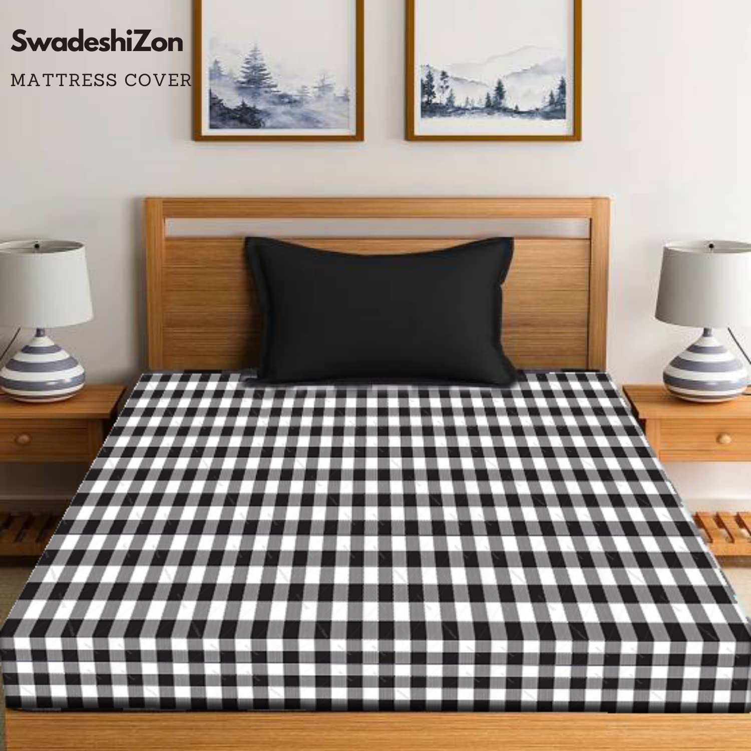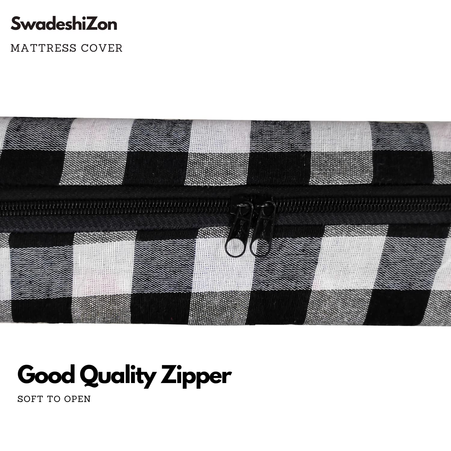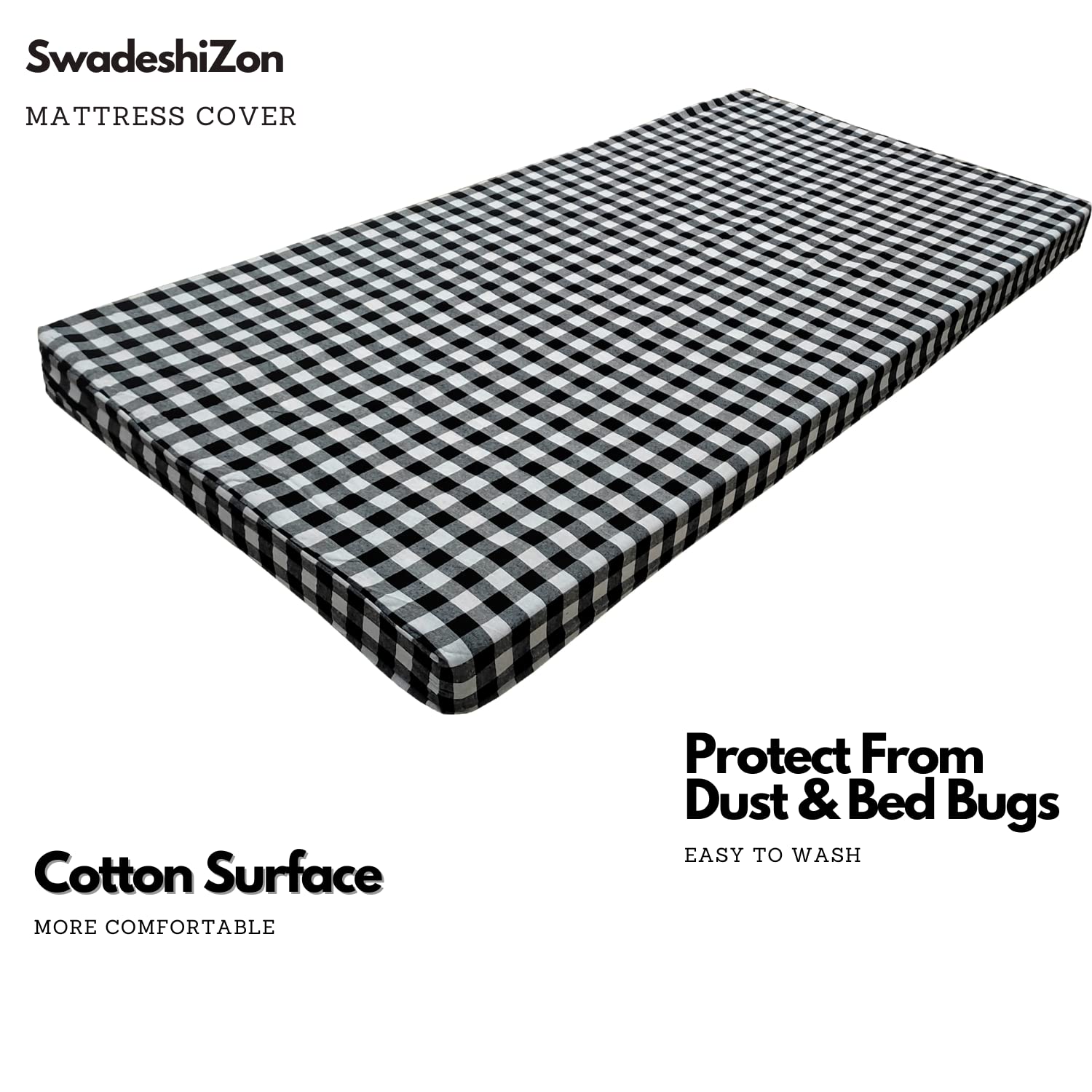 SwadeshiZon Present Mattress covers made of cotton fabric. Makes your mattresses more comfortable. Selected Check designs and colors .Zip on three sides which make it Easy to remove. Machine washable. Pack of 2 .Good quality chain and zip used.