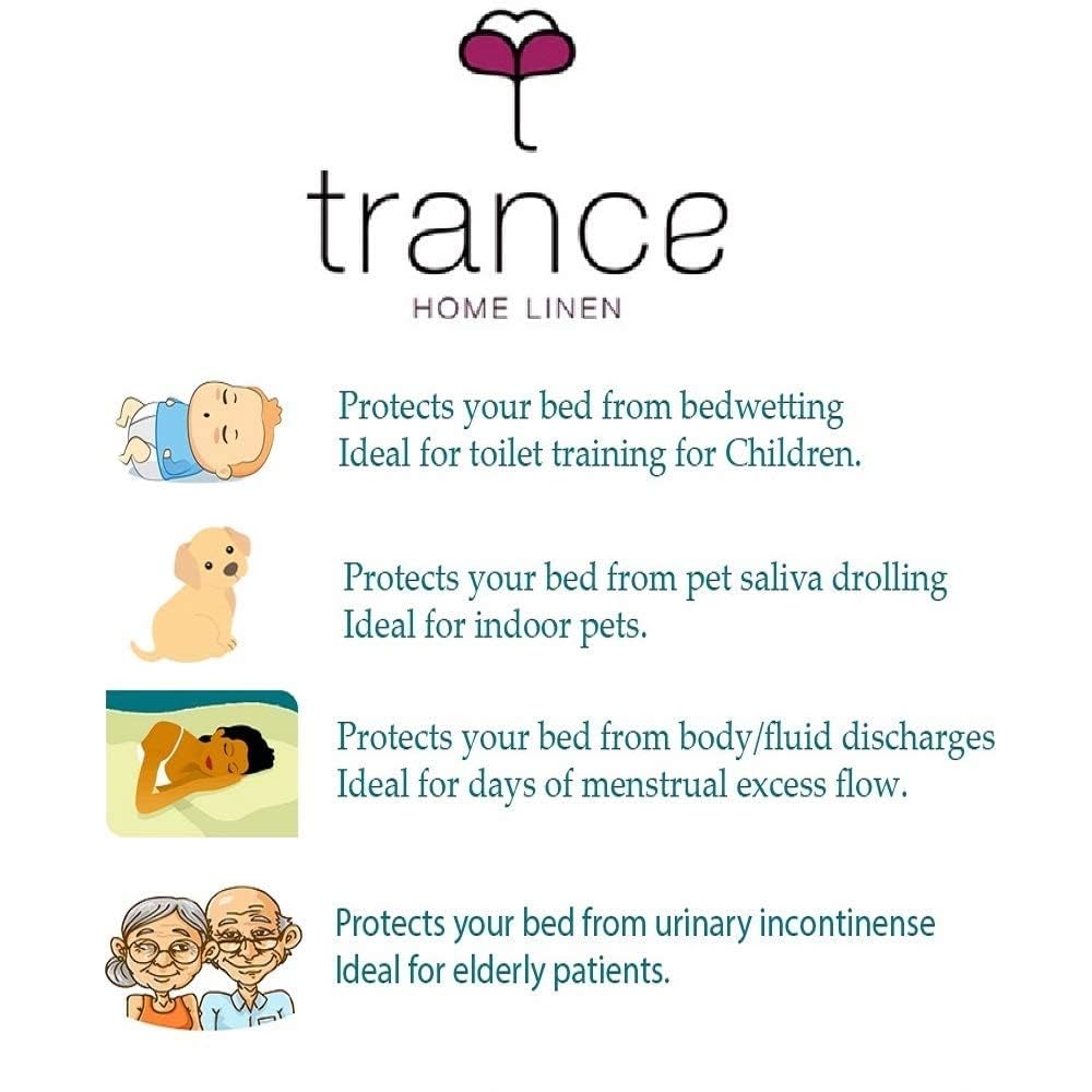 Trance Mattress Protector – Size – 75×36 Inches (6.25×3 Feet) | Fits Up To 8 Inches Mattress Thickness | Our bed protectors are waterproof and breathable at the same time. Our Bed protectors play the vital role safeguarding your mattresses from bed wetting and spillage. Trance Mattress covers are the best ideal option for Baby /Infant bed wetting and adult incontinence. Our bed covers provide complete protection to your mattress, like a dry sheet, from dust and spillages.