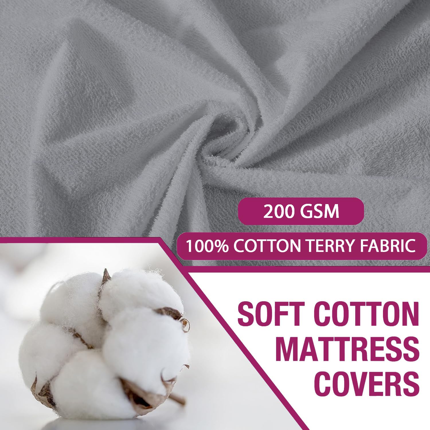 ✔FABRIC: Top Surface is made of Premium Cotton Terry with TPU back coating. Extends the life of your mattress. This will not change the feel of your mattress and provide comfort as cotton naturally absorbs moisture. ✔FITTED STYLE – Lycra Stretch Fabric Skirting with 1/2-inch Elasticated Border all around gives Perfect Snug Fit, Easy Insert and Removal.