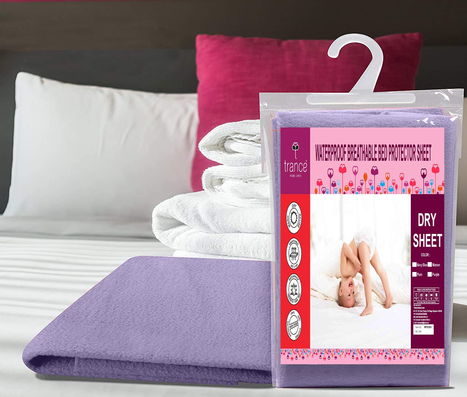 (152.4Cmx198Cm)/(60″X78″) Queen Dry Sheets From The #1 Waterproof Mattress Protector Makers In India Trance Home Linen..