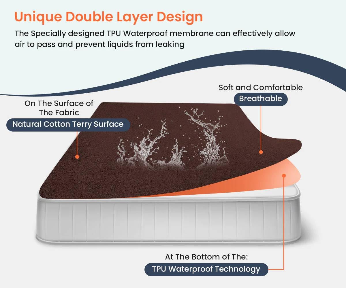 PERFECT SIZE AND MATERIAL: Measures definite size that fit up to your bed. It has a fitted cover style plan with versatile for better fitting, 100 percent Terry Cotton Fabric with fluid square coating