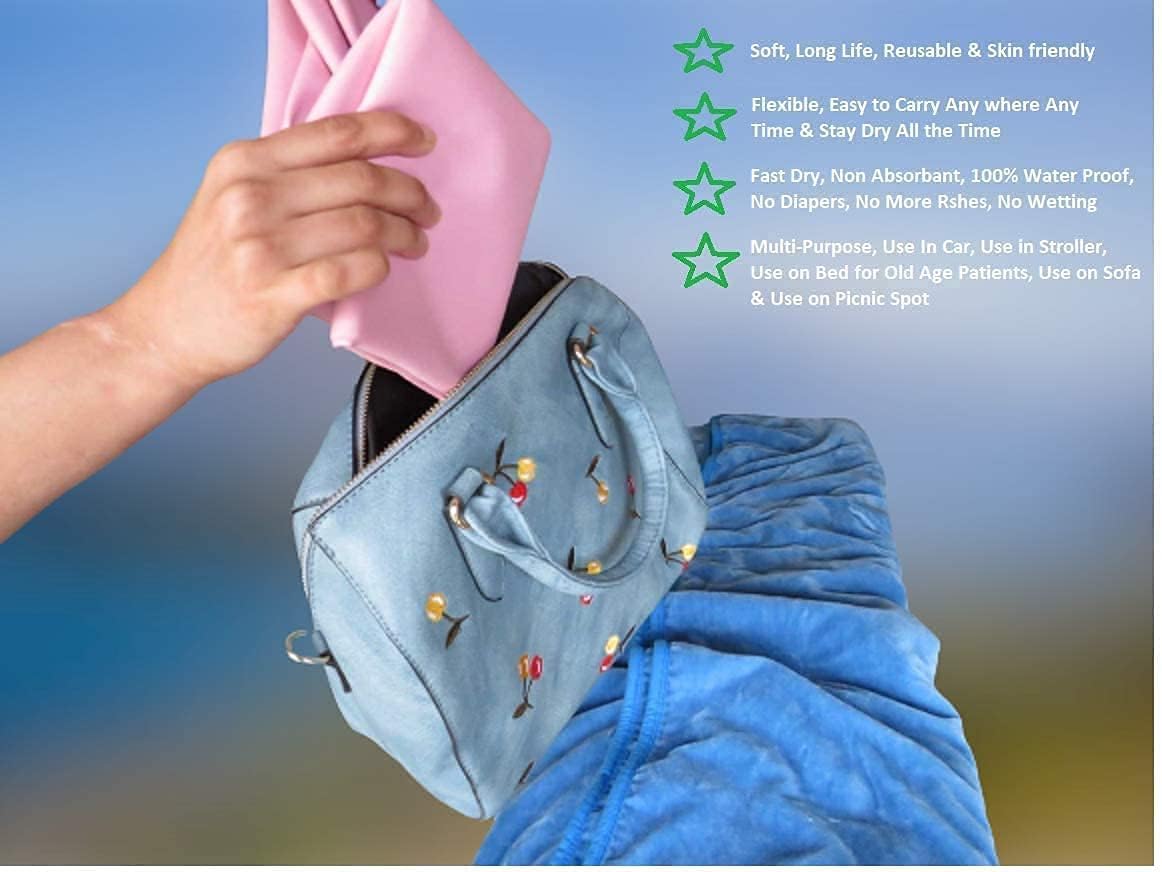 You can use this beautiful dual colour waterproof mattress protector practically anywhere anytime, Place baby waterproof pad on bed while sleeping, couch while sitting, like a mat on floor for baby,on car seat, & all it takes to clean is wipe it and ready for reuse incontinence bed pads