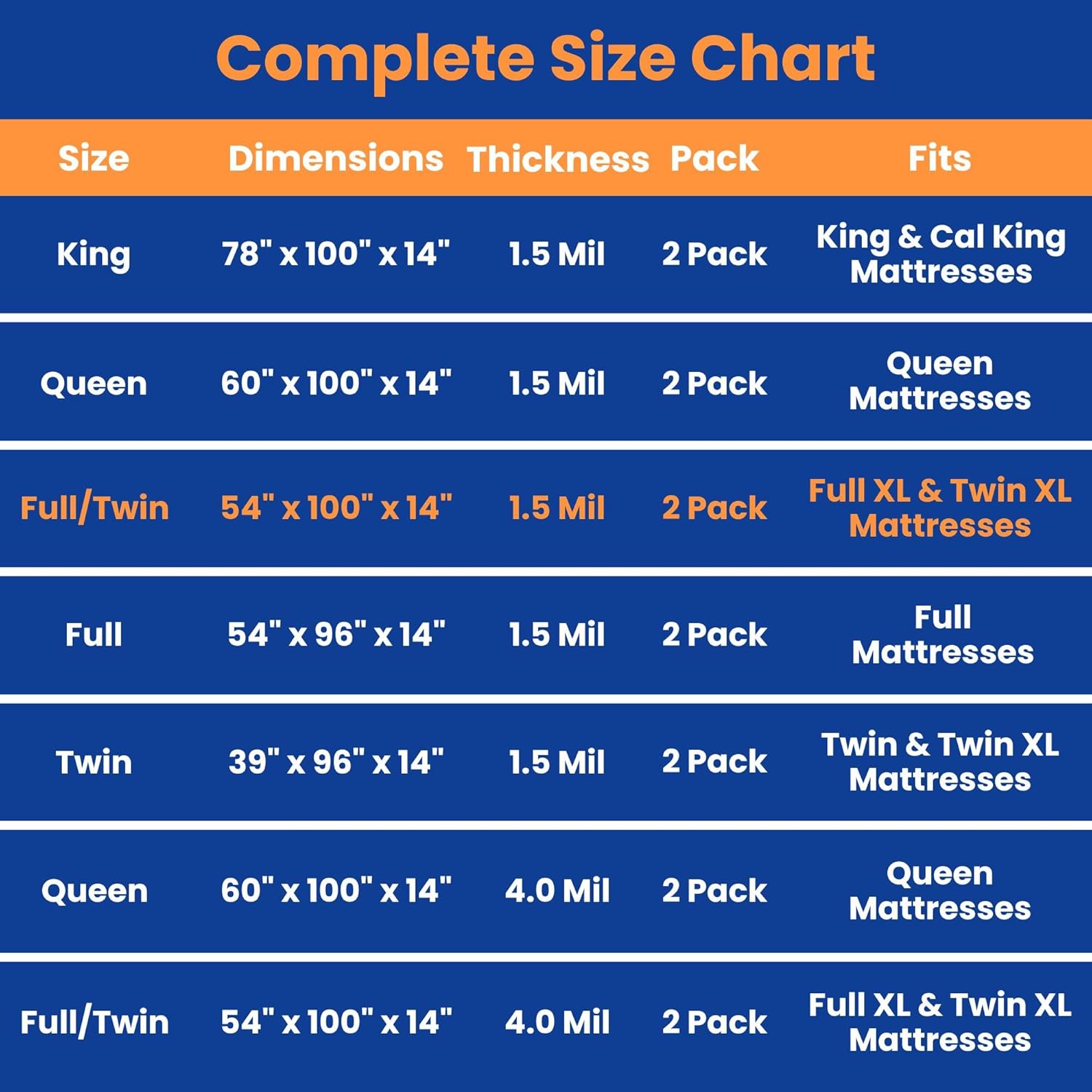 Durable & odorless material: Our 1.5mil thick mattress protector, made from superior, odorless polyethylene, is ideal for Full & XL size, and Twin & XL size mattresses (100″L x 54″W x 14″H). The transparent, tear-resistant design offers protection from dust, dirt, moisture, and stains.