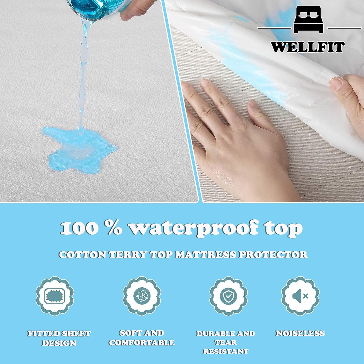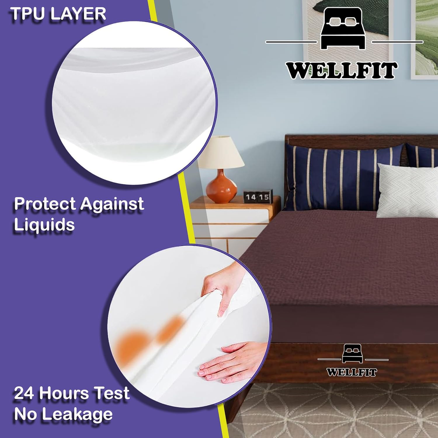 WELLFIT Mattress PROTECTOR Designed with elastic bands all around, the Protector works like a fitted sheet, wrapping right round your mattress. all stays nice, snug at all times.It works like 360-degree shield to protect the mattress surface from liquid,dusts,stains.