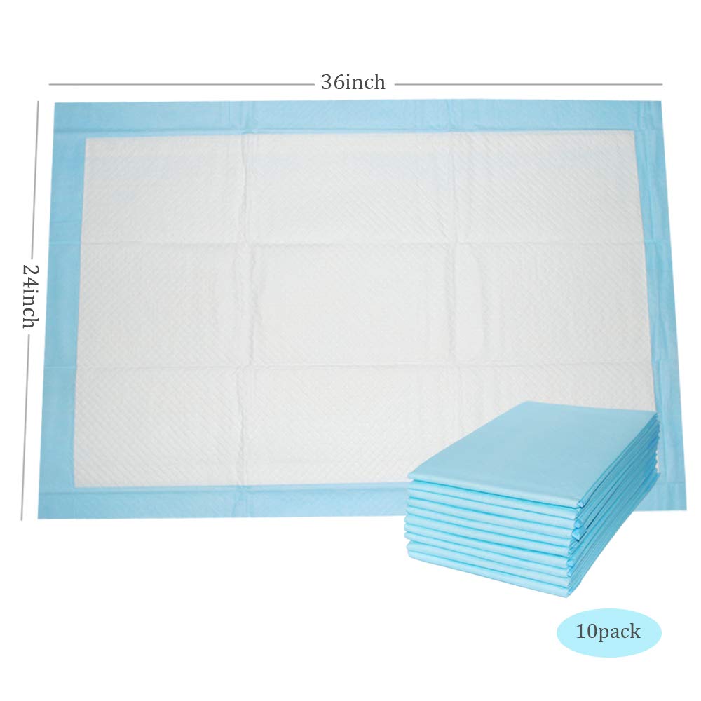 Meet XYE-Store Disposable Incontinence Bed Pads, 24 x 36 inches in size, intended to offer assured protection for furniture, beds, and other surfaces. These leak-proof, heavy absorbency underpads are perfect for babies, women, adults, and pets, tackling incontinence, acting as bed covers, or helping puppy training. 10 quality blue underpads are included in each pack, providing a helpful solution to ensure cleanliness and hygiene in your living areas.