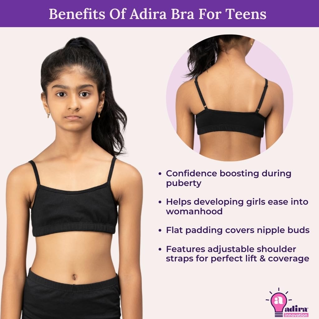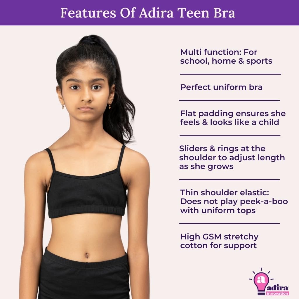 Adira | Beginners Bra for Girls 13-14 Years | Flat Padding for Nipple Coverage | Comfortable Strecthy Cotton | Comfy-Breathable Beginners Bra & Super Soft Material | Pack of 3