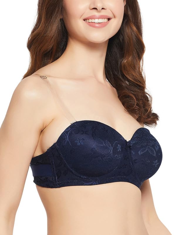 Padded Bra Crafted With Beautiful Lace Fabric. Blue Solid Bra. Padded Cups For Enhanced Shape & Nipple Coverage. Full Cups For Zero Spillage. Underwired For Support & Lift. Balconette Style For Wide Neck Outfits. Has Detachable Straps.