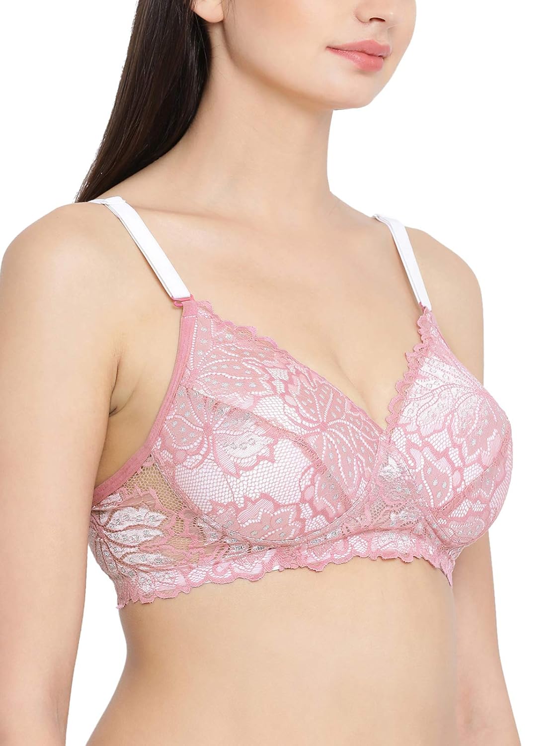 Clovia Women’s Lace Padded Non-Wired Multiway Bridal Bra (BR1000P22_Pink_32D)