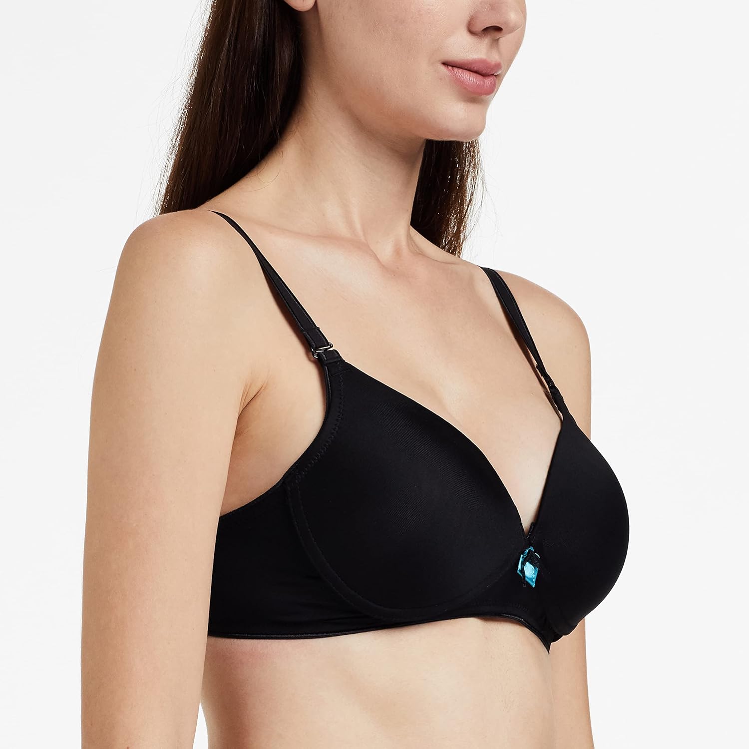 The clever construction of this T-shirt bra provides an invisible neckline that completely disappears under clingy tops and gives a smooth silhouette. The cami back construction makes it the perfect complement to most outfits with a lower back.