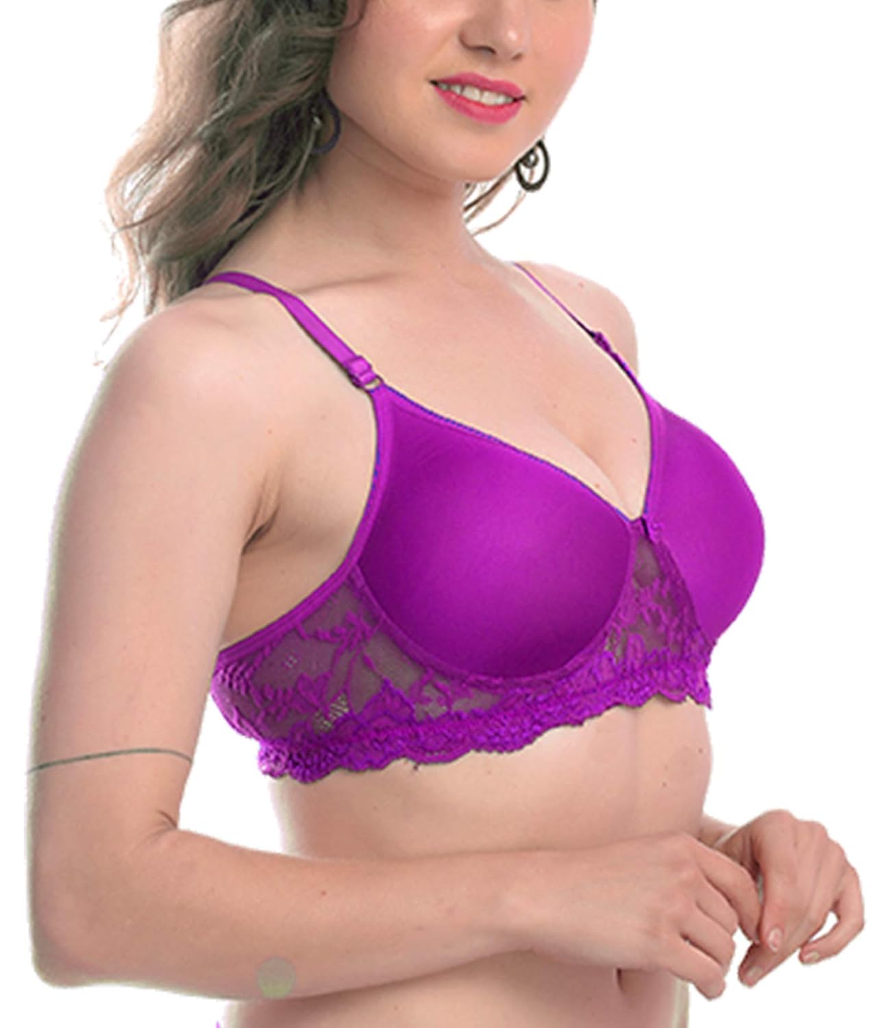 FIMS – Fashion is my style presents premium quality seamless padded cup bra.Lace trmming at the bottom.Full Coverage bra.Half-adjustable straps:-The half-adjustable straps of this bra along with the secure hook and eye closure helps to offer women a personalised fit. Adjust the straps and the closure according to your comfort and flaunt a flawless look.This cotton-rich bra has been constructed from a blend of 93% cotton and 7% elastane to provide utmost levels of comfort for everyday wear. Carry on with all your daily activities while remaining comfortable all day long in this padded, high-coverage bra from FIMS – Fashion is my style.This bra can be fastened securely with a hook and eye closure, which is one of the simplest and most secure method.Adjust the closure as per the fit you require and remain fully supported and secured.