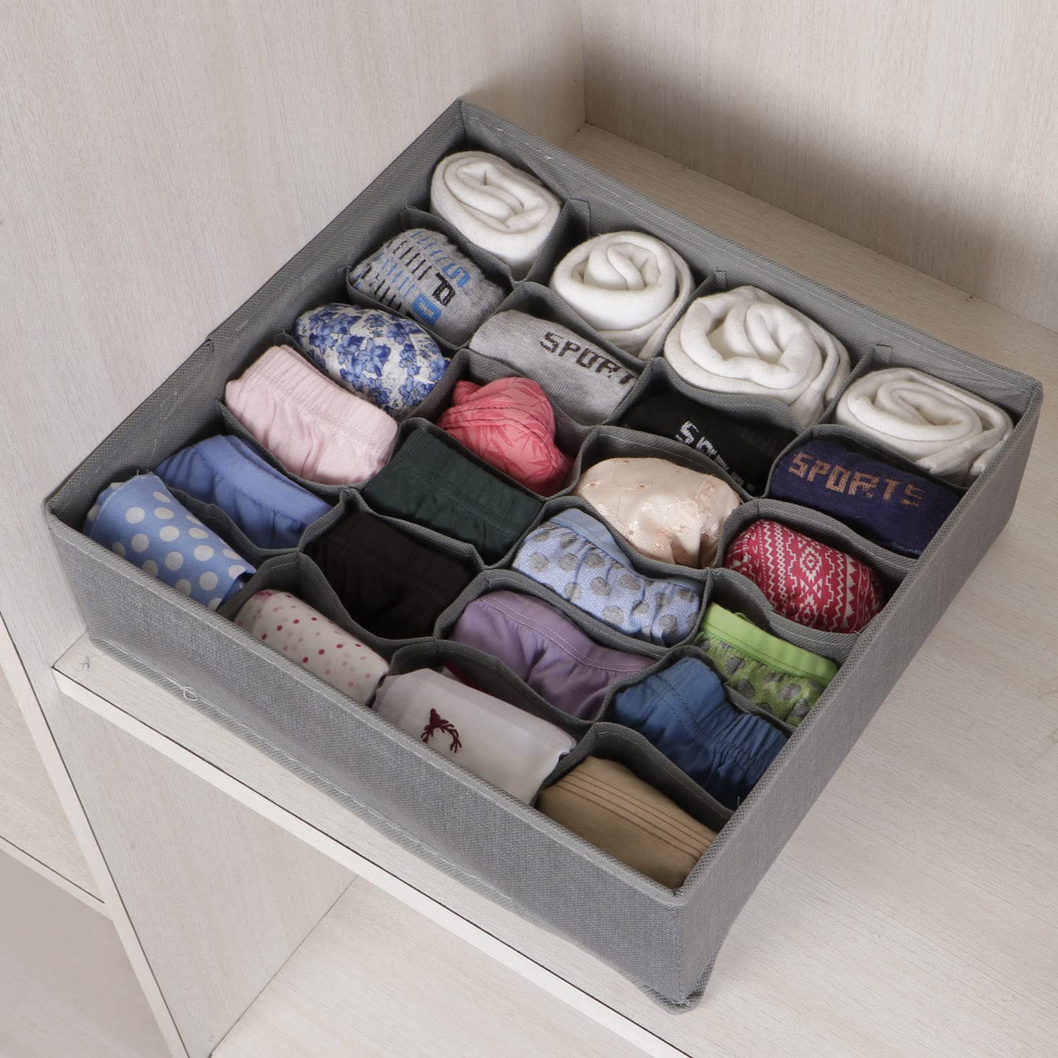 24 GRIDS – Organizing & cutting down on clutter to holding a variety of personal items such as socks, scarves,handkerchiefs etc -makes it as an amazing bra organiser storage box, socks holder,panty organizer box,tie organizer, undergarments arranging box etc. Also you can turn your drawer organizer from a cluttered, balled up mess to an organized & accessible space with this undergarments storage drawer organiser.