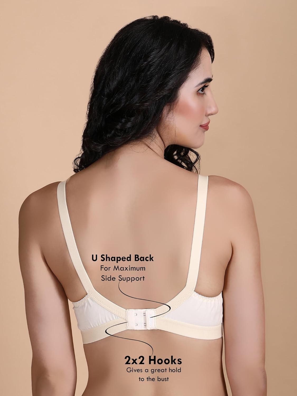 Klassik {30+Years of Legacy} Woman Everyday Chikan Cotton Bra, Non-Padded & Full Coverage | Daily Wear Bra for Girls | Wirefree, Adjustable Straps