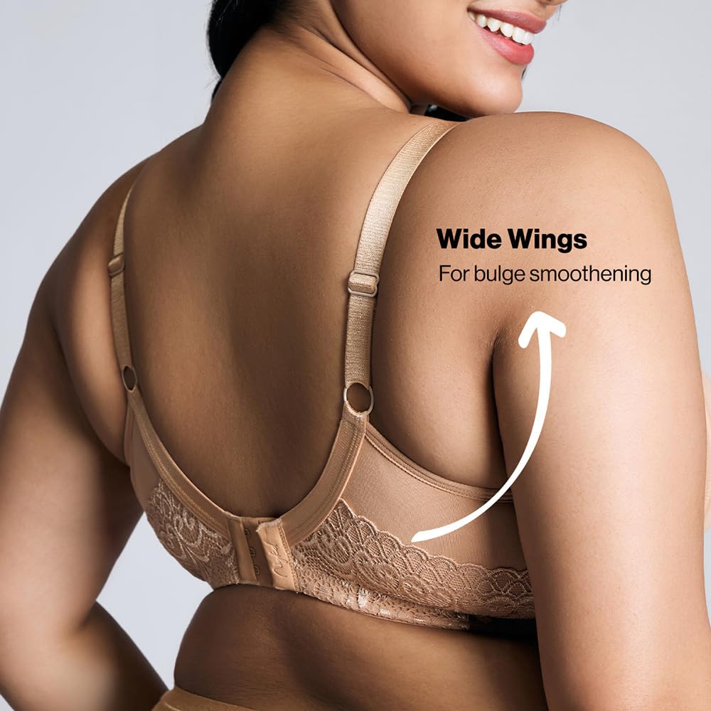 Our 24/7 cotton support bra is designed with signature M-Frame for maximum support and lift. M-frame will ensure extra support and no spillage from the top. With features like wide soft straps to relieve pressure on shoulders, cotton fabric on cups for a clean look and side shaping panel for extra support, this one is your go-to everyday bra. Bottom-Band : Wide bottom band designed keeping in mind comfort and support for your body type. Coverage : Full Coverage Fabric : Soft and strong, stretch cotton fabric for all day comfort. Cups : Non padded. Engineered cup panels with double layer cotton fabric for maximum support. Wire : Wirefree Comfort Wear It Under : All your everyday outfits