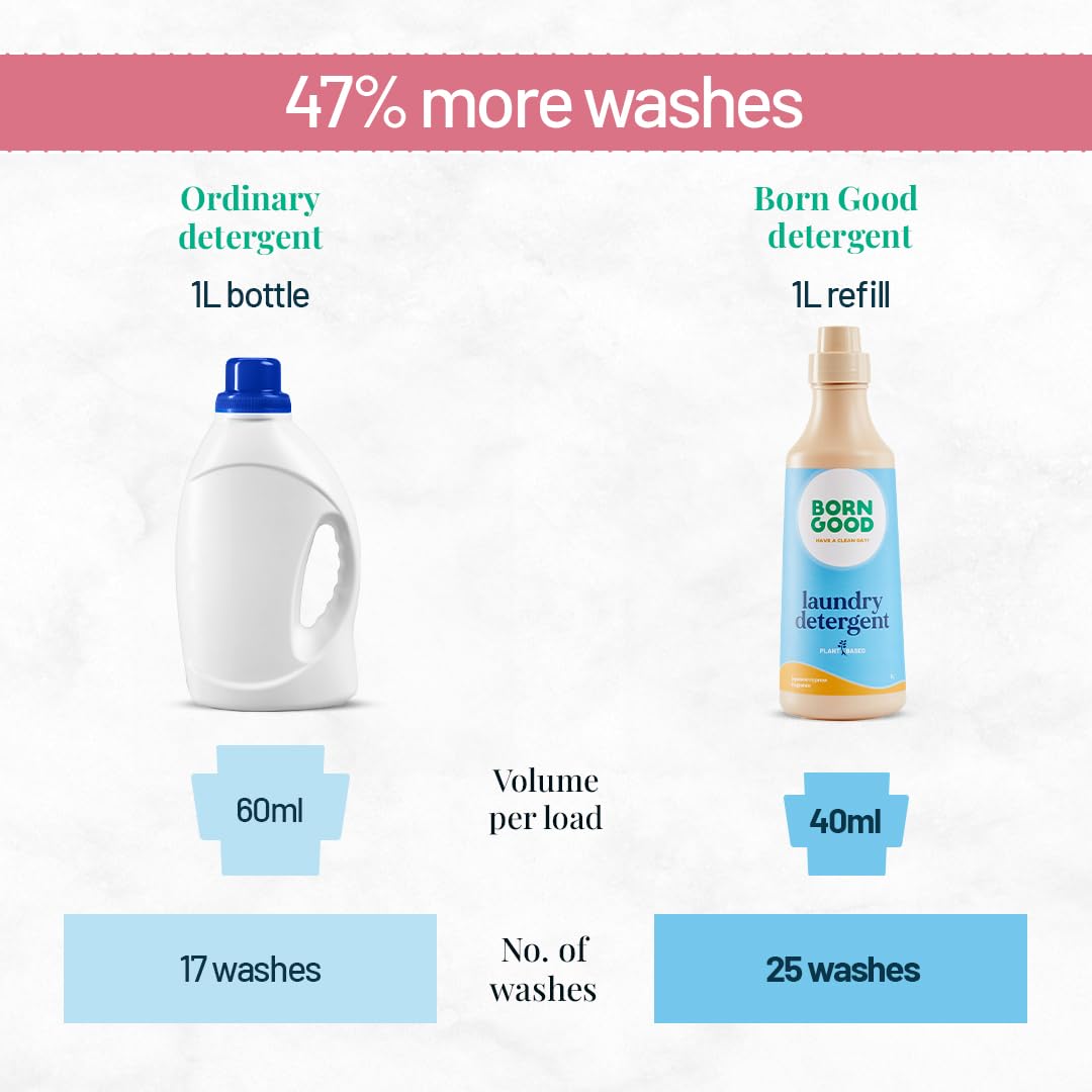 CERTIFIED GOODNESS: USDA Certified BioBased Product with a score of 72% showing higher biodegradability. Traditional detergents typically contain 40% organic carbon. BORN GOOD IS: Made in india, 2x plastic positive. Cruelty Free Certified