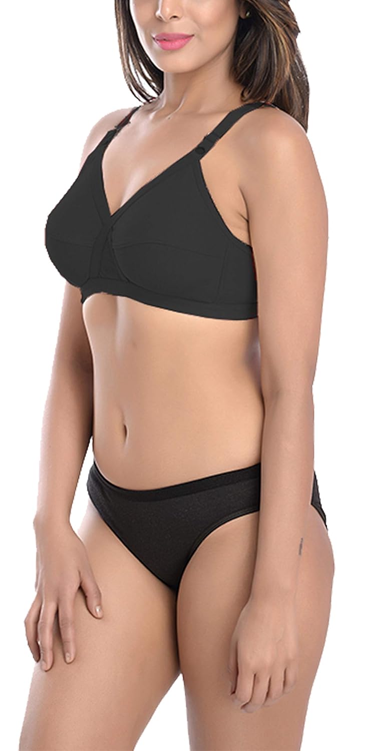 FIMS – Fashion is my style bra panty set designed for full cover and “X” support for perfect comfort and fit, over an above broad elastic helps to support the bust in perfect shape which every women opt to look in a Lingerie set.This bra Panty set is made from superior quality, skin friendly cotton fabric, which has high sweat absorbing capacity, keeping you dry all day long even in hot season.