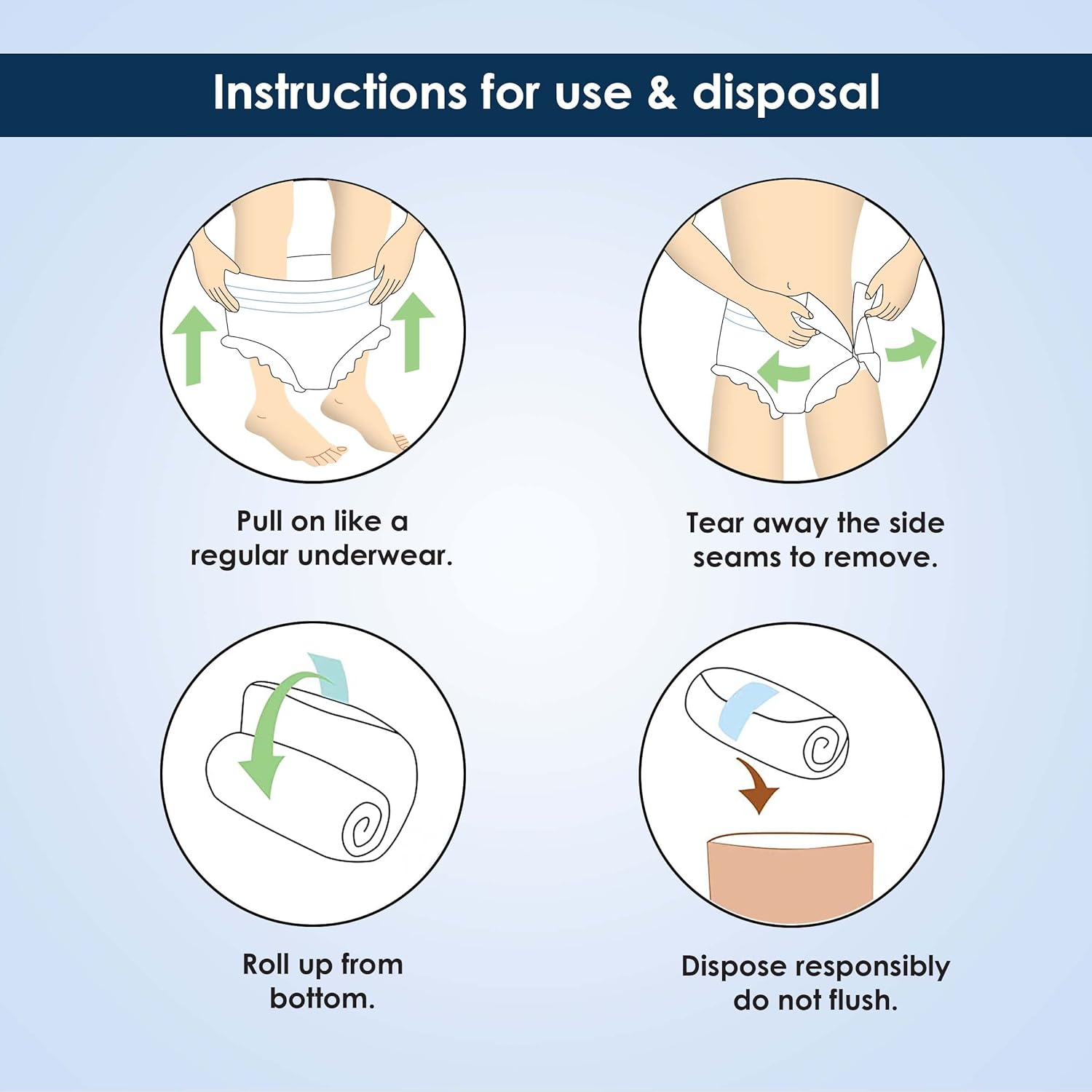Designed for a comfortable fit like a real underwear. The elastic stretch panel on waist band provides comfortable fit whereas the leg cuff assures protection against leakage. The high absorbency gel locks wetness for skin wellness, dryness and odour control