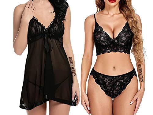 OFFNITE Enterprises Women’s satin robe paired with matching see through bikini net bra panty set Beautiful Satin robe with satin collar V-neck design and Lace bordered sleeves Above-the-knee length Three quarter sleeves, waist tie-up. Satin detailing at the neckline and sleeves Size : Both satin robe and bikini bra panty set are of FREE SIZE. Perfect combo for a super hot sexy look. One Size Fits Most. Fits well for regular Small, Medium and Large sizes. Size range : Bust (30 to 36 inch), Waist (28 to 34 inch)