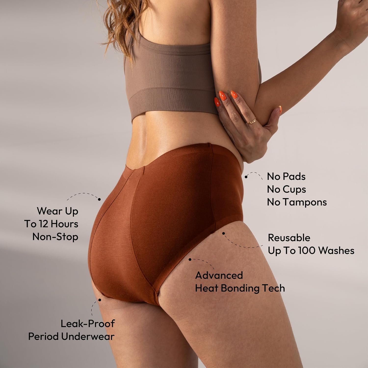 Mahina’s period underwear comes in four absorbency levels: Light, Medium, Heavy, and Super Heavy. Designed to match your flow, they can keep you protected for up to 12 hours without interruption.
