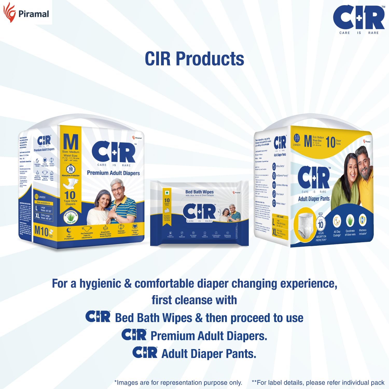 CIR Adult Diaper Pants are an effective solution to incontinence for your loved ones. Made of soft & breatheable fabric that has quick absorption, CIR Adult Diaper Pants are designed for easy adjustments & maximum comfort. Also equipped with a wetness indicator for convienient usage. The diapers also have properties of odour control and leakage guard to prevent any kind of spillage. Enriched with the goodness of Aloe Vera for smooth & clean skin. Discontinue use in case of any irritation.