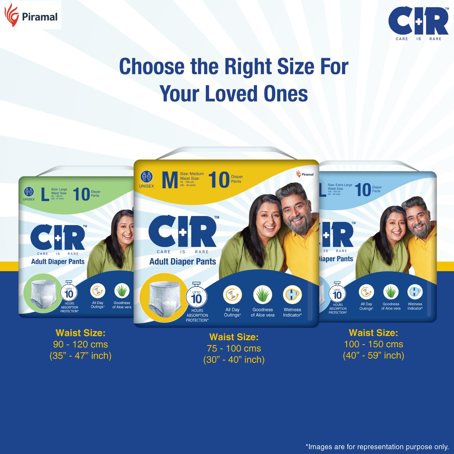 CIR Adult Diaper Pants Style | Adult Diaper Medium Size (M)|Waist (75-100 cm|30”- 40”) |10 hr Absorption-Protection | Unisex with Wetness Indicator | Odour Control | Goodness of Aloe Vera | 10 Units