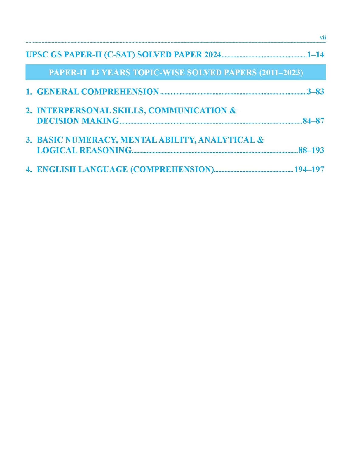 Comprehensive Coverage: It covers the last 30 years of questions (1995-2024) for General Studies (Paper I) and the last 14 years (2011-2024) for CSAT (Paper II).Up-to-Date and Revised: The book is thoroughly revised and updated to reflect any changes in the exam pattern.Topic-Wise Breakdown: All chapters are organized by topic, making it easy to focus on specific areas. (History, Geography, Polity, Economy, etc.)Precise Explanations: Get clear and accurate explanations for all the solved questions.Essential Information: Includes information on the Civil Services Exam format, exam schemes, tips & strategies, and time management techniques.CSAT Focused: Provides dedicated sections for all CSAT paper topics like comprehension, reasoning, and English language skills.Bonus Material: Get access to a list of past UPSC Mains Essay paper topics and even probable essay topics for 2025.
