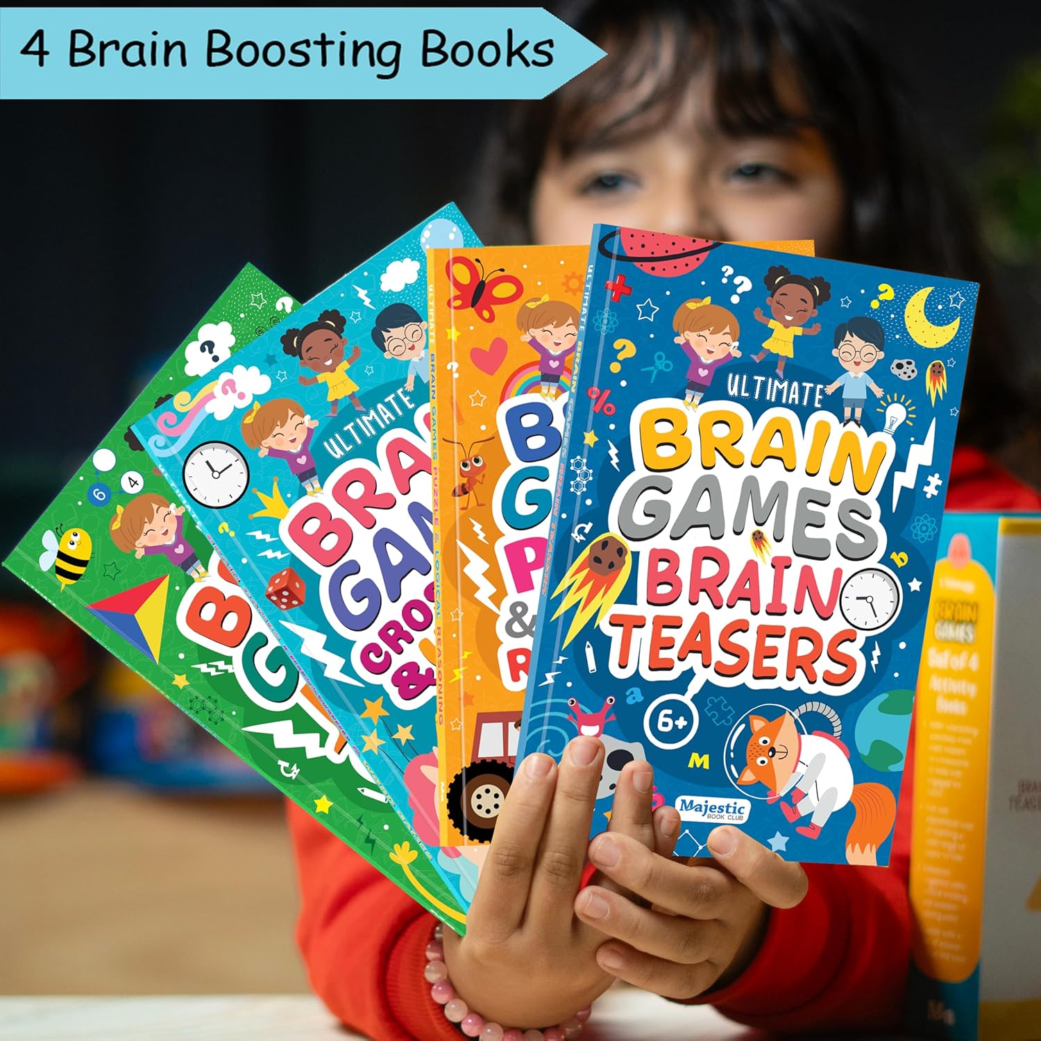 Introducing “The Ultimate Brain Games” collection, a treasure trove of mental stimulation for young minds! 🌟 This set includes four exciting books packed with over 400 brain booster activities designed to enhance children’s vocabulary, mathematical skills, problem-solving abilities, and logical reasoning.