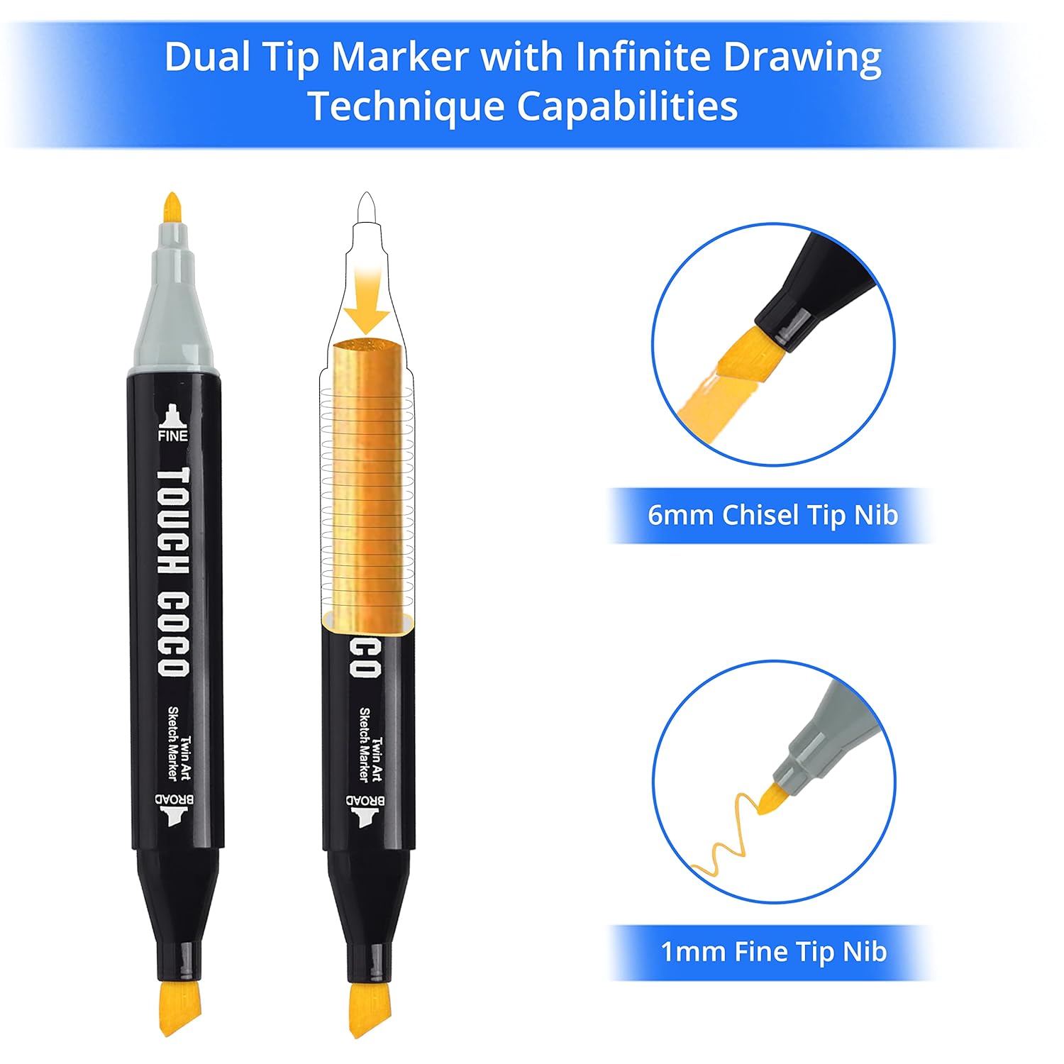 Ideal gift: Dual tip markers set comes with different colour markers and carry case. Use these pens to express your creativity and create your next masterpiece. It is an ideal art set gift for family, friends & kids on birthday & special days. Perfect valentine gift for boyfriend, girlfriend, wife, husband.