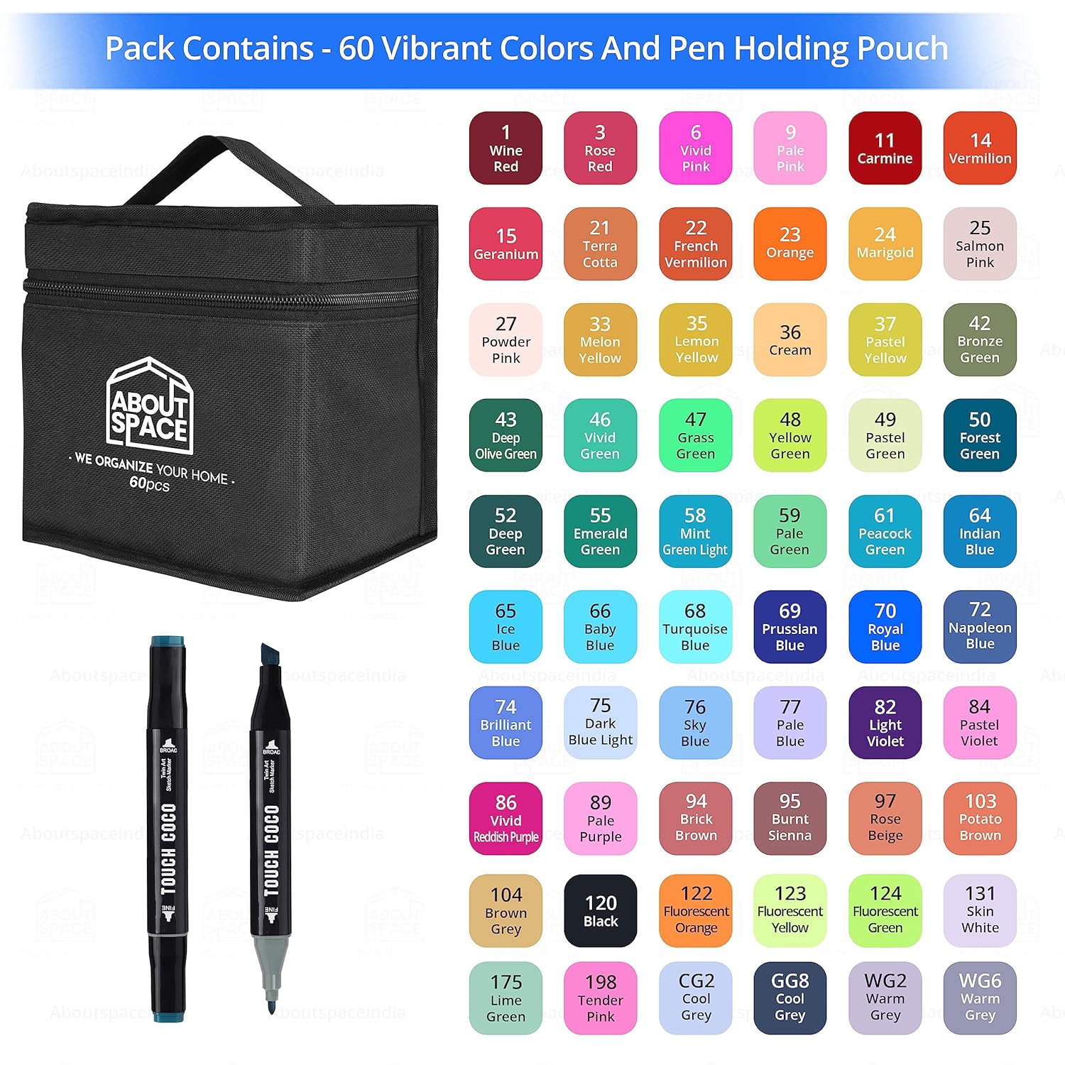Dual tips: About Space twin tipped highly pigmented oil-based markers has 60 vibrant colours with colour code. Use the bullet tip for colouring, shading, and blending, and the calligraphy tip for writing. Bullet and calligraphy tip are fast drying and great for projects. Pack dimension 18.5 cm / 7″ L , 10 cm / 3.94″ B, 17 cm / 6.5″ H, Marker dimension 15.5cm / 6″ L, Broad nib 6 mm, Narrow nib 1 mm