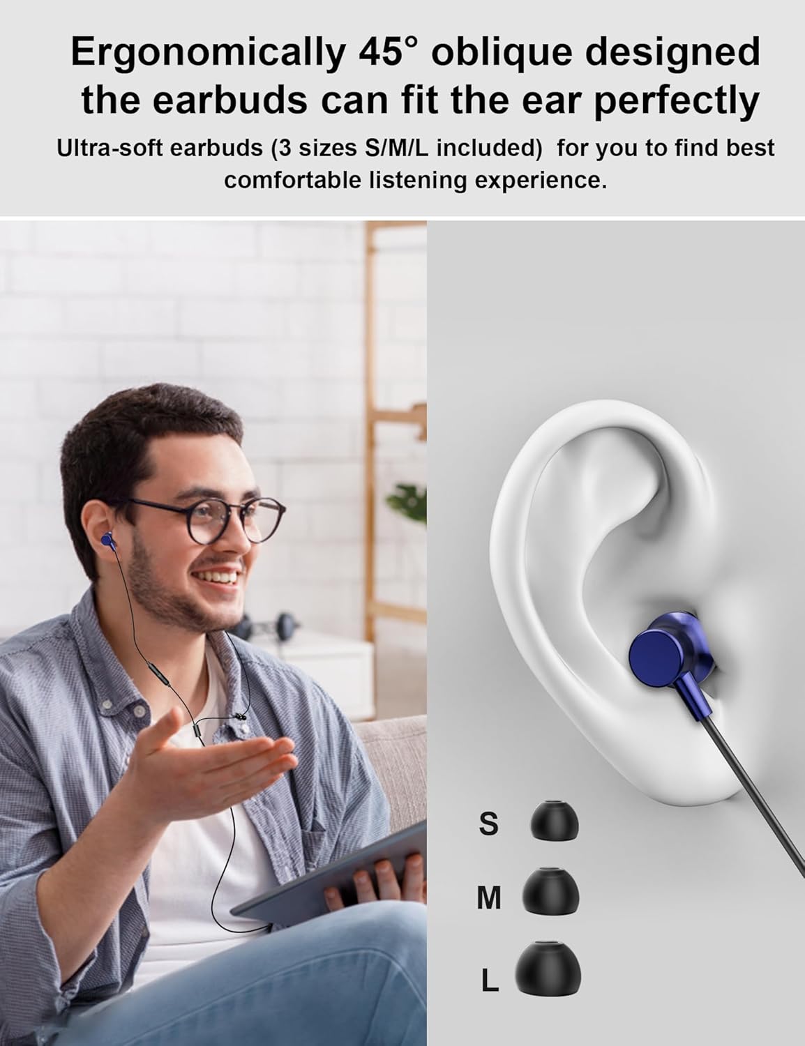 Soft and Snug In-Ear Headphones: With 45 degree inclination angle Designed ergonomically, the USB C Earbuds can fit the ear perfectly and wear comfortably even for long periods of time without any pain. 3 pairs of different size earplugs are included to ensure a perfect fit for each ear. Great ideal for video conferences, home office, gaming, online live broadcasts, running, exercise and other activities