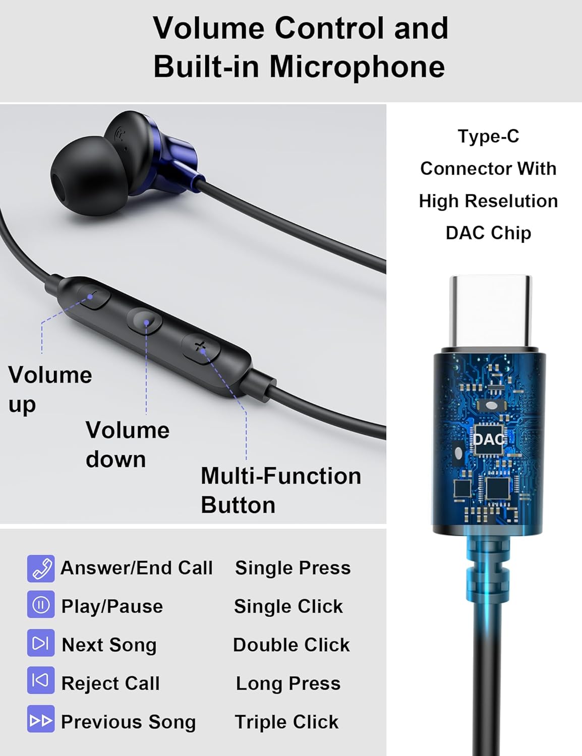 USB C Headphone: Upgraded In-Ear C Type Earphone for Samsung Galaxy S25/S25+/S25 Ultra/S24/S24+/S24 Ultra/S24 FE/S23 FE S23+ S23 Ultra S22+ S22 Ultra S21FE S21 Ultra, for iPhone 16e/16/16 Plus/16 Pro/16 Pro Max/15/15 Plus/15 Pro/15 Pro Max, for Google Pixel 9 Pro/9 Pro XL/9 Pro Fold/8 Pro/8a, for Galaxy A56 A53 A54 A36 A35, Z Flip 6 5 4, Fold 6 5 4, for Galaxy Tab S10+ S9 S8 Ultra S7 S6 S5e, for OnePlus 12 Open 11 10 Pro 10T 9 Pro 8T, for iPad Pro 2024/Air/Mini and other Type C device without 3.5mm port