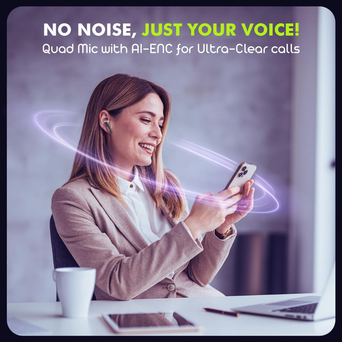 ✅ Crystal-Clear Calls, Always: Four high-performance microphones with Environmental Noise Cancellation (ENC) ensure your voice is captured with precision, blocking out background noise for exceptionally clear calls, even in crowded or noisy environments.