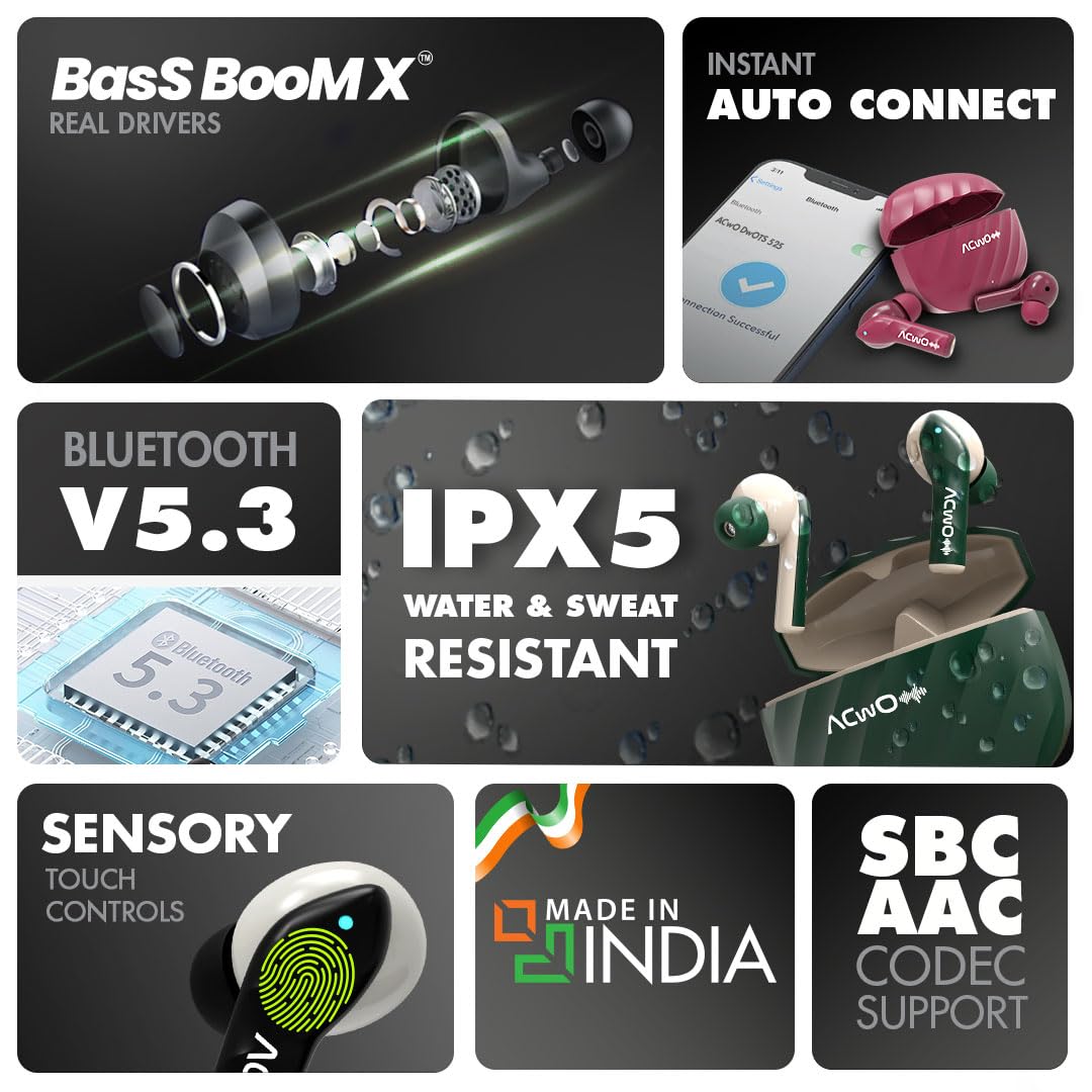 ✅[15 Mins Charge = 150 Min Playtime]: Experience the convenience of rapid charging with ACwO Earbuds. Just 15 minutes of charging provides 150 minutes of playtime. Perfect for those on the go, a brief charge gives you ample playtime for workouts, commutes, or short trips, keeping your music, calls, and podcasts uninterrupted.