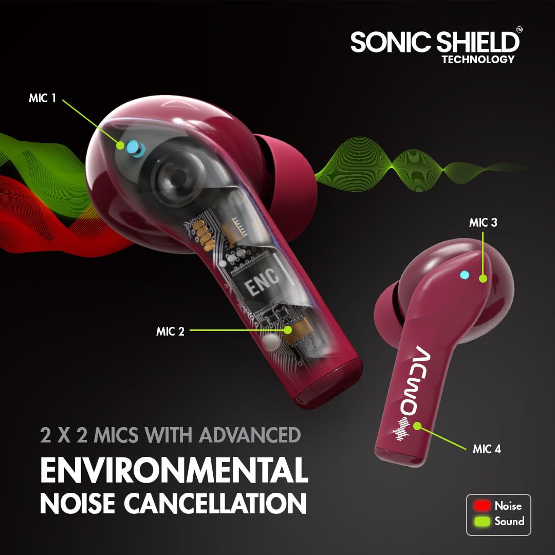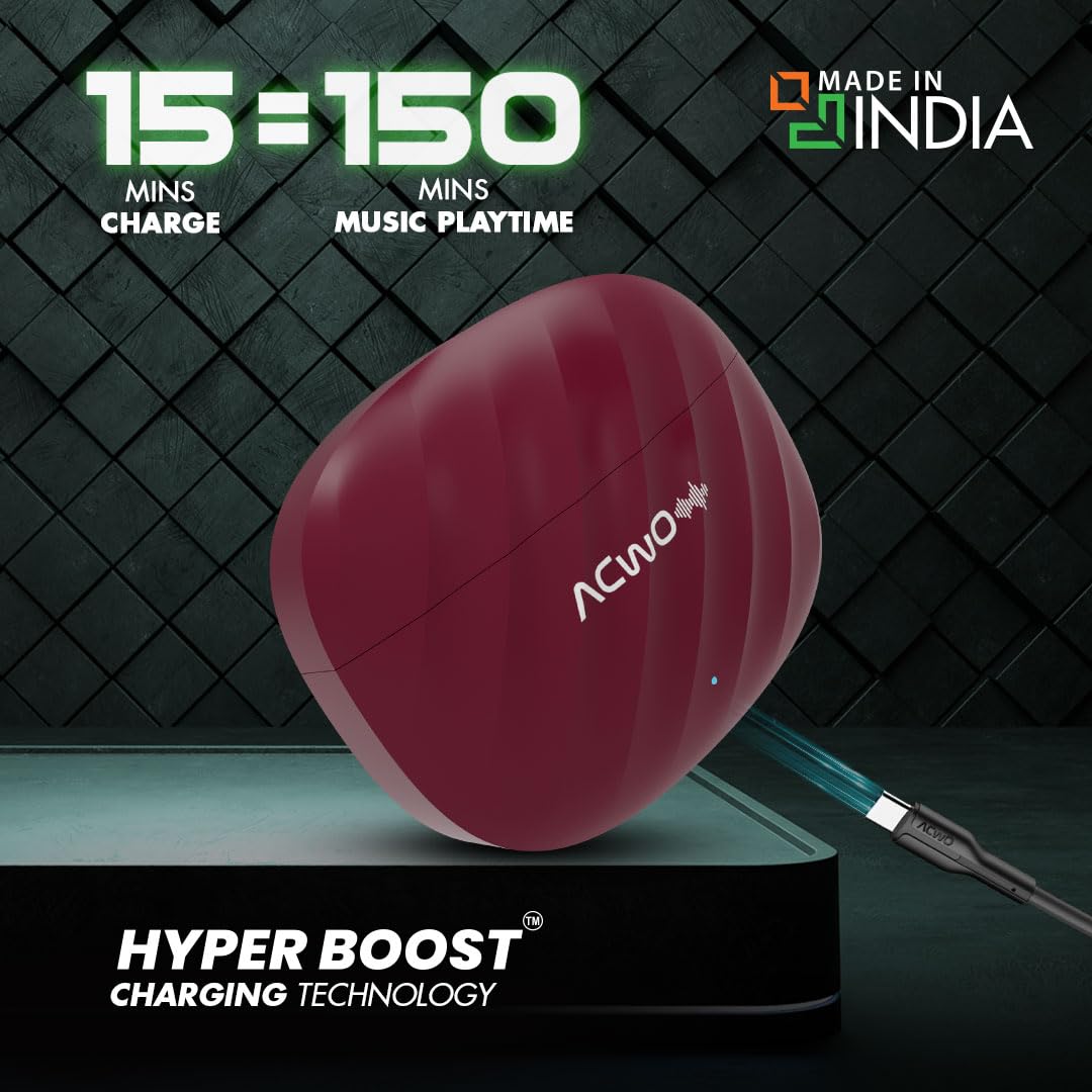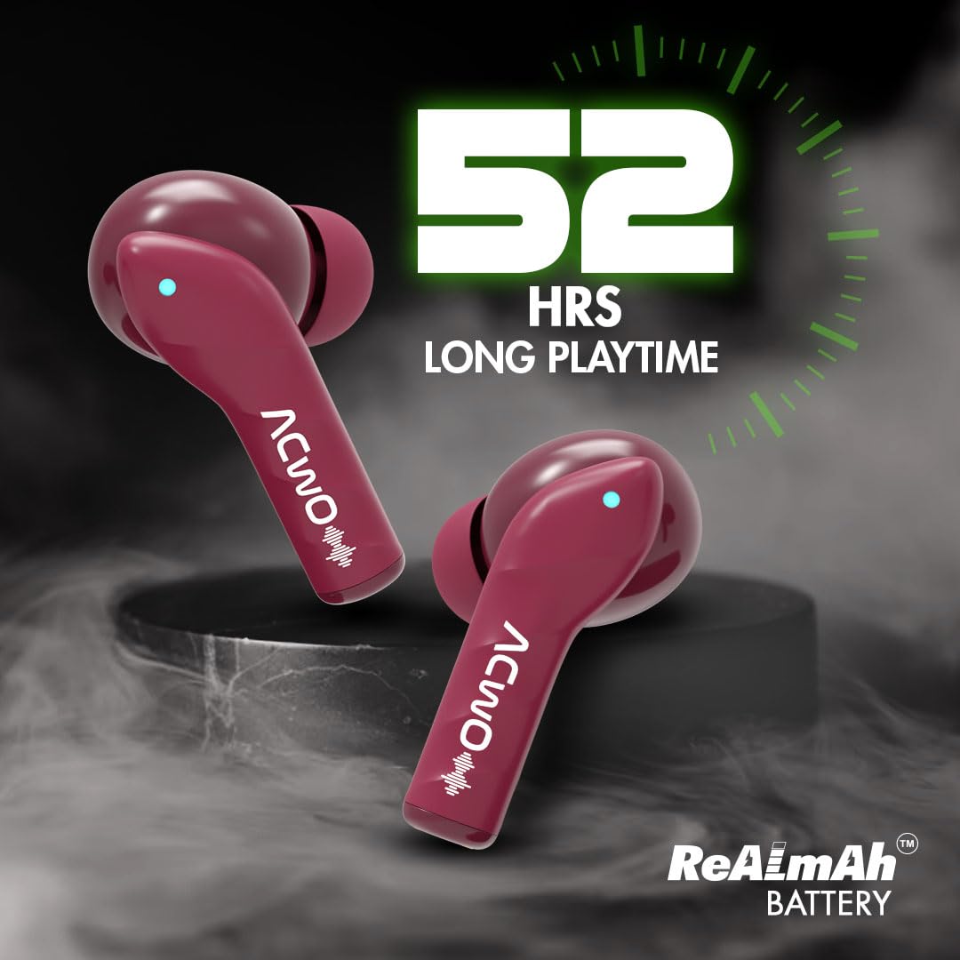 ACwO Dwots 525 TWS Earbuds with 52 Hrs Playback, Bass Boom X Real Drivers, Sonic Shield Quad Mic Enc Technology, 3 Eq Modes and Hyper Boost Charging – in Ear, Red