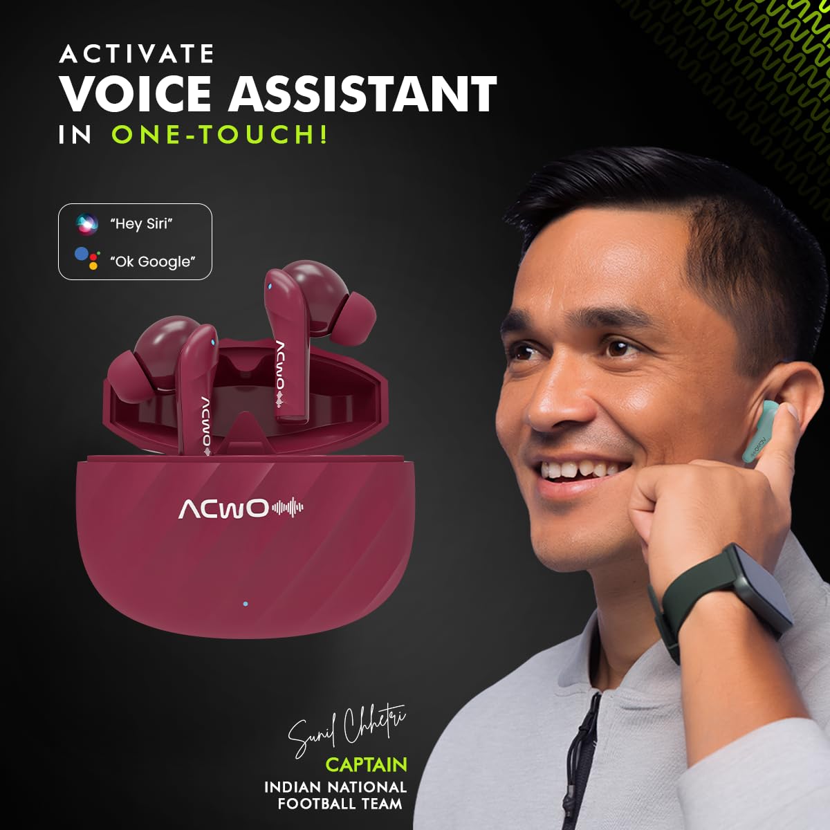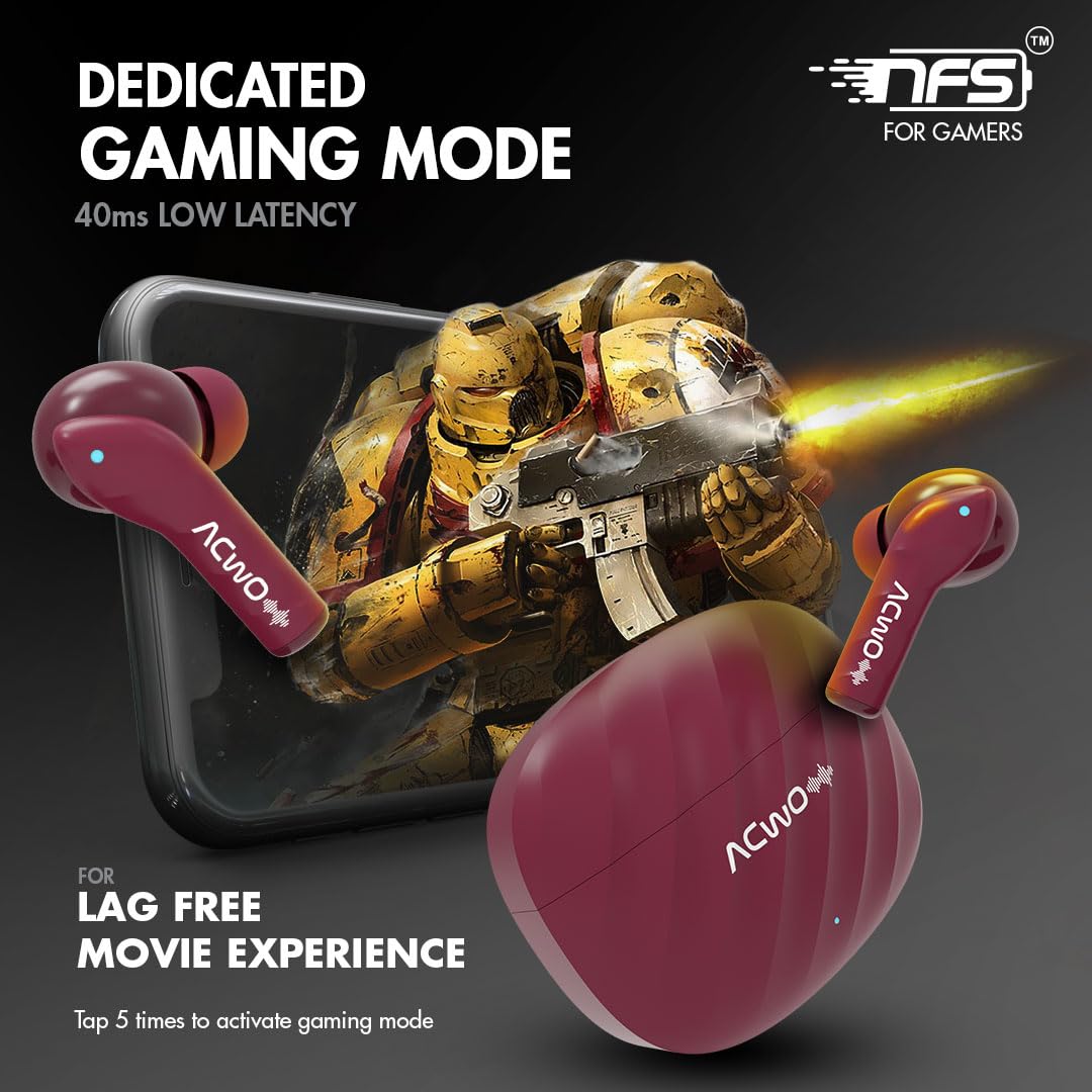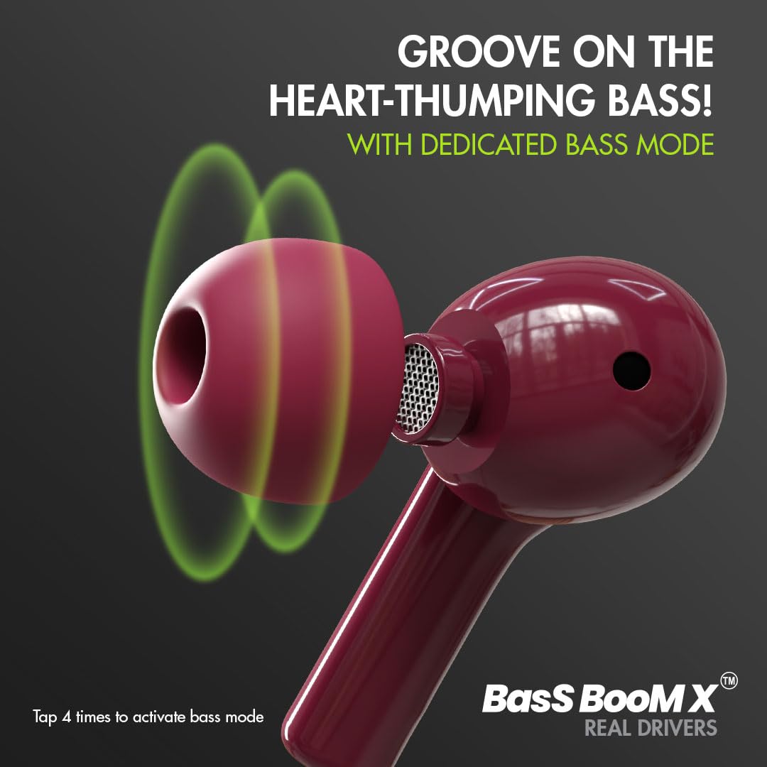 ACwO Dwots 525 TWS Earbuds with 52 Hrs Playback, Bass Boom X Real Drivers, Sonic Shield Quad Mic Enc Technology, 3 Eq Modes and Hyper Boost Charging – in Ear, Red