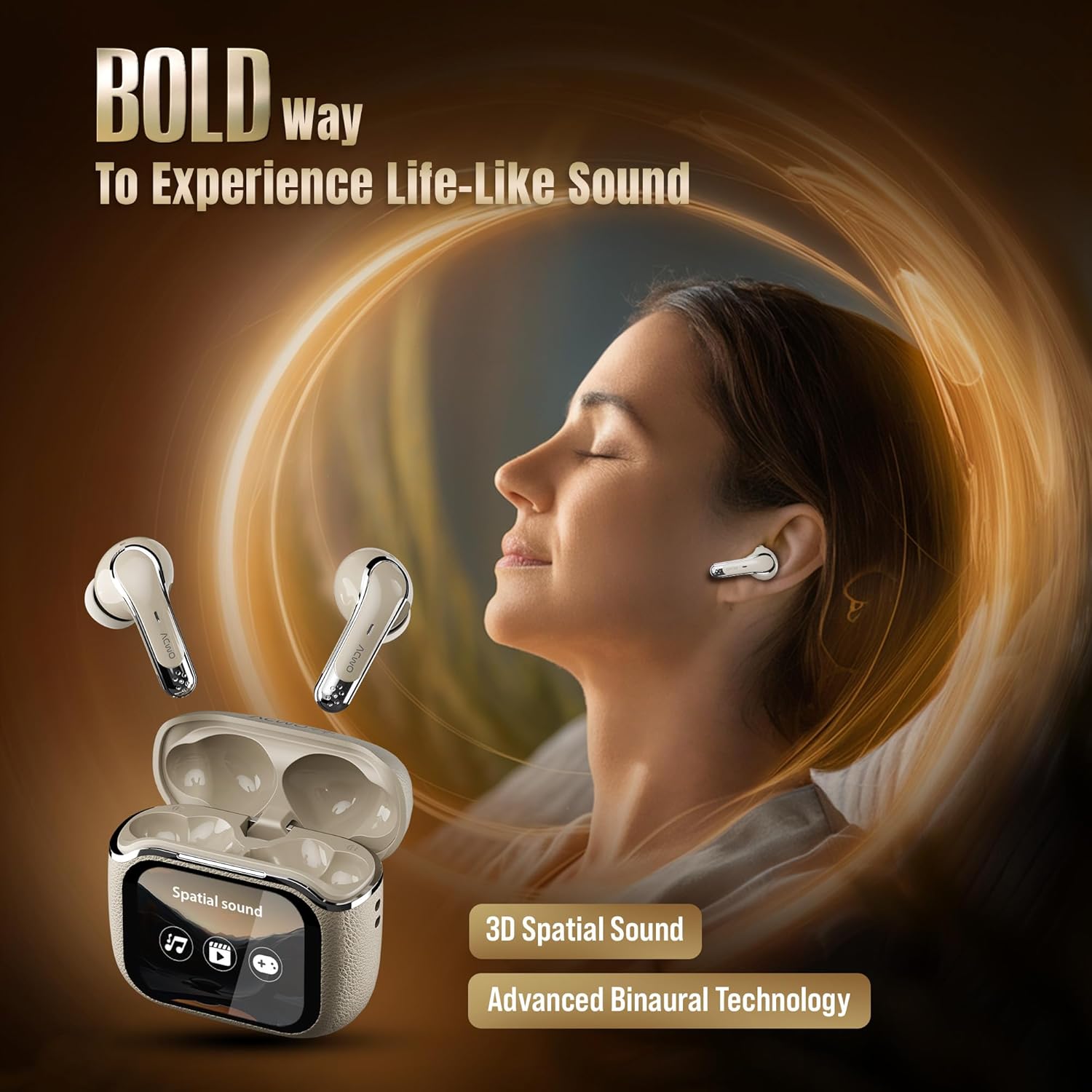 ✅ Bold Way To Control Your Sound – Take command with advanced touch controls that let you adjust volume, skip tracks, toggle ANC, manage calls, and even use the Find My Earphone feature—all with a simple touch on the intuitive display.