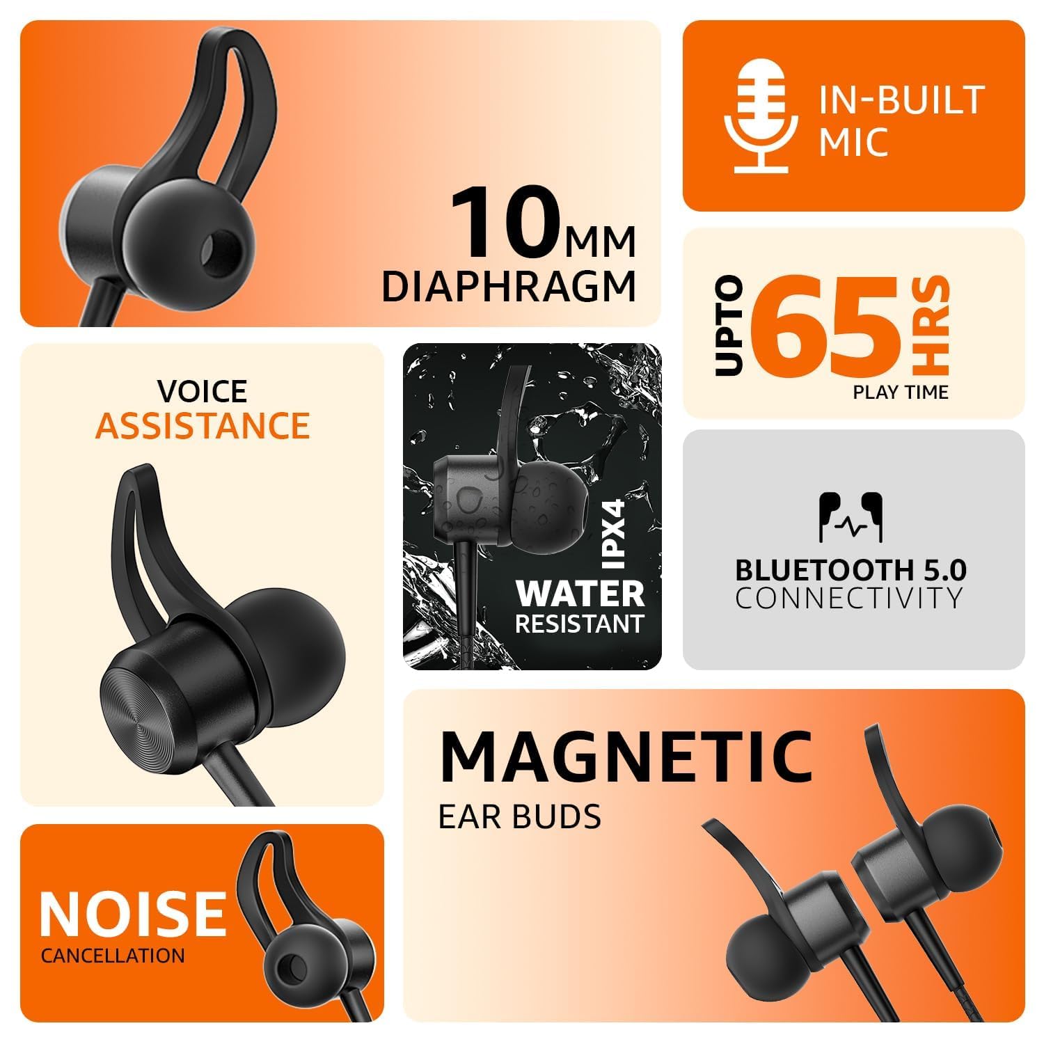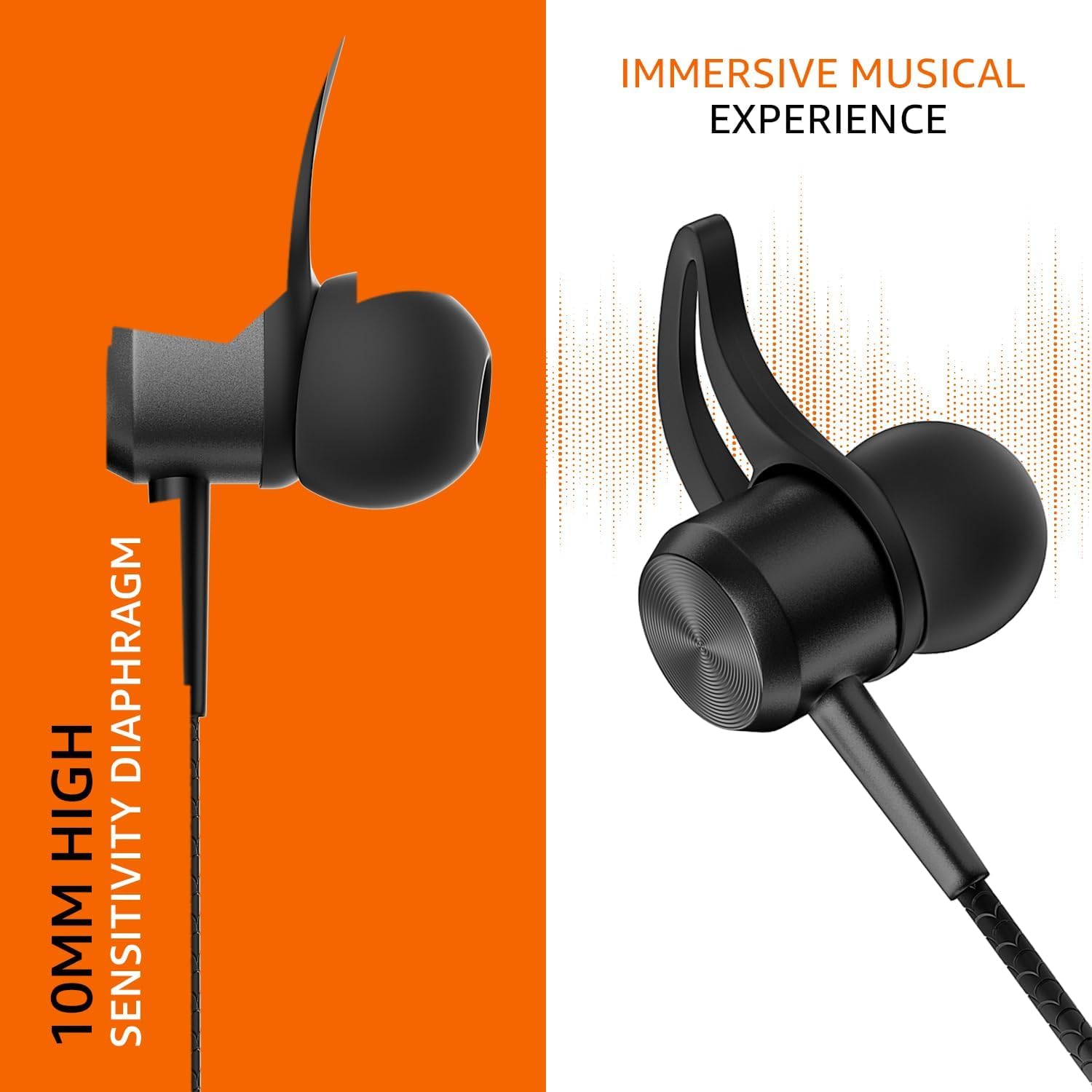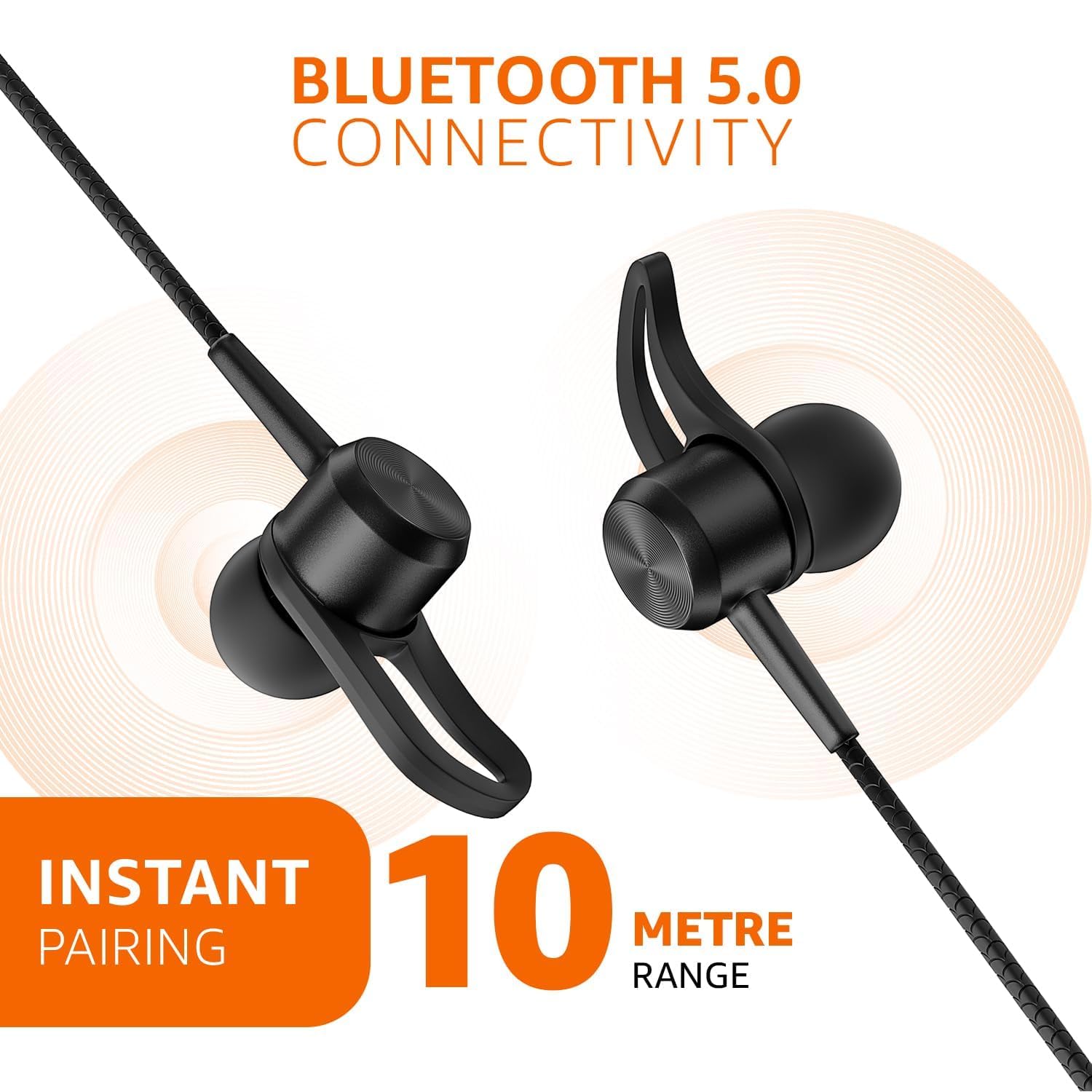 WIRELESS NECKBAND WITH MIC: In-ear wireless Bluetooth neckband with built-in HD mic and 10mm dynamic driver that offers exquisite sound details with bass