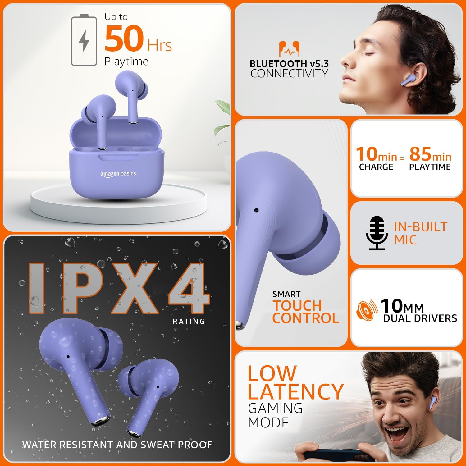 Fast charge – With the fast-charging feature, you can get 85 minutes of uninterrupted playing time after charging the earbuds for only 10 minutes.
