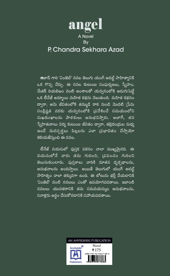 ఆజాద్ గారి ‘ఏంజెల్’ నవల తెలుగు యంగ్ అడల్ట్ సాహిత్యానికి ఒక గొప్ప చేర్పు. ఈ నవల కుటుంబ సంఘర్షణలు, స్నేహం, మేజిక్ రియలిజం వంటి అంశాలతో యవ్వనంలోకి అడుగుపెట్టే ఒక టీనేజ్ అమ్మాయి మహిత కథను చెబుతుంది. మహిత కథనం ద్వారా, ఆమె జీవితంలోకి తమ్ముడి రాక నుండి మొదటి ప్రేమ సంక్లిష్టతవరకు యవ్వనంలోకి ప్రవేశించే సమయంలోని సుఖదుఃఖాలను పాఠకులు అనుభవిస్తారు. అలాగే, తన స్నేహితురాలు విద్య కుటుంబ జీవితం ద్వారా, తల్లిదండ్రుల మధ్య ఉండే మనస్పర్థలు పిల్లలను ఎలా ప్రభావితం చేస్తాయో తెలియజేస్తుంది ఈ నవల. టీనేజ్ వయసులో పుస్తక పఠనం చాలా ముఖ్యమైనది. ఈ వయసులోనే వారు తమ గురించి, ప్రపంచం గురించి తెలుసుకుంటారు. పుస్తకాలు వారికి నూతన దృక్పథాలను, అనుభవాలను అందిస్తాయి. అయితే తెలుగులో యంగ్ అడల్ట్ సాహిత్యం చాలా తక్కువగా ఉంది. ఈ లోటును భర్తీ చేయడానికి ‘ఏంజెల్’ వంటి నవలలు ఎంతో ఉపయోగపడతాయి. ఇలాంటి నవలలు యువతరానికి తమ సమవయస్కుల అనుభవాలను, సవాళ్లను అర్థం చేసుకోవడానికి సహాయపడతాయి.
