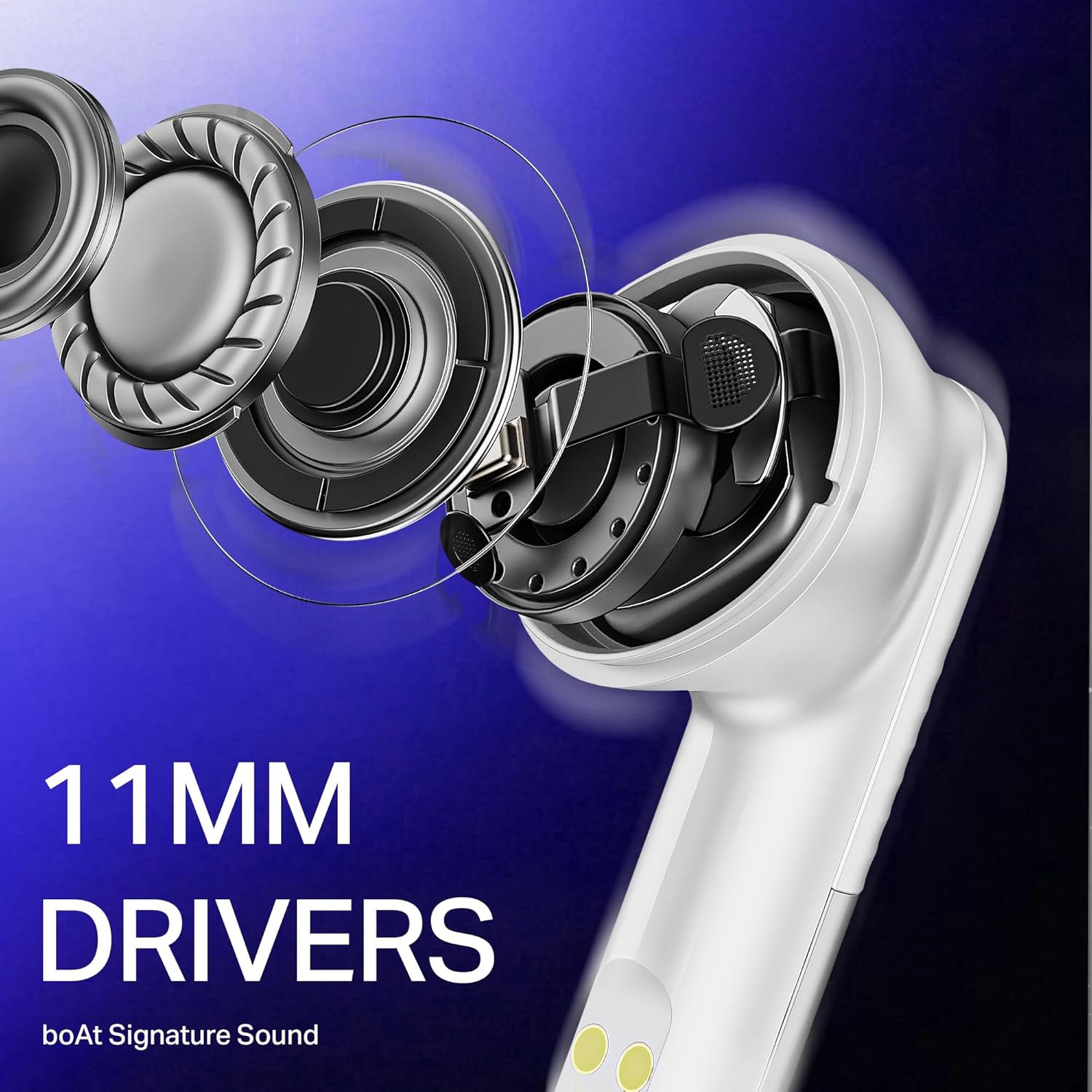 11 mm Drivers with boAt Signature Sound: Escape the chaos and jam to thumping boAt Signature Sound from the dual 11 mm drivers in these earbuds.