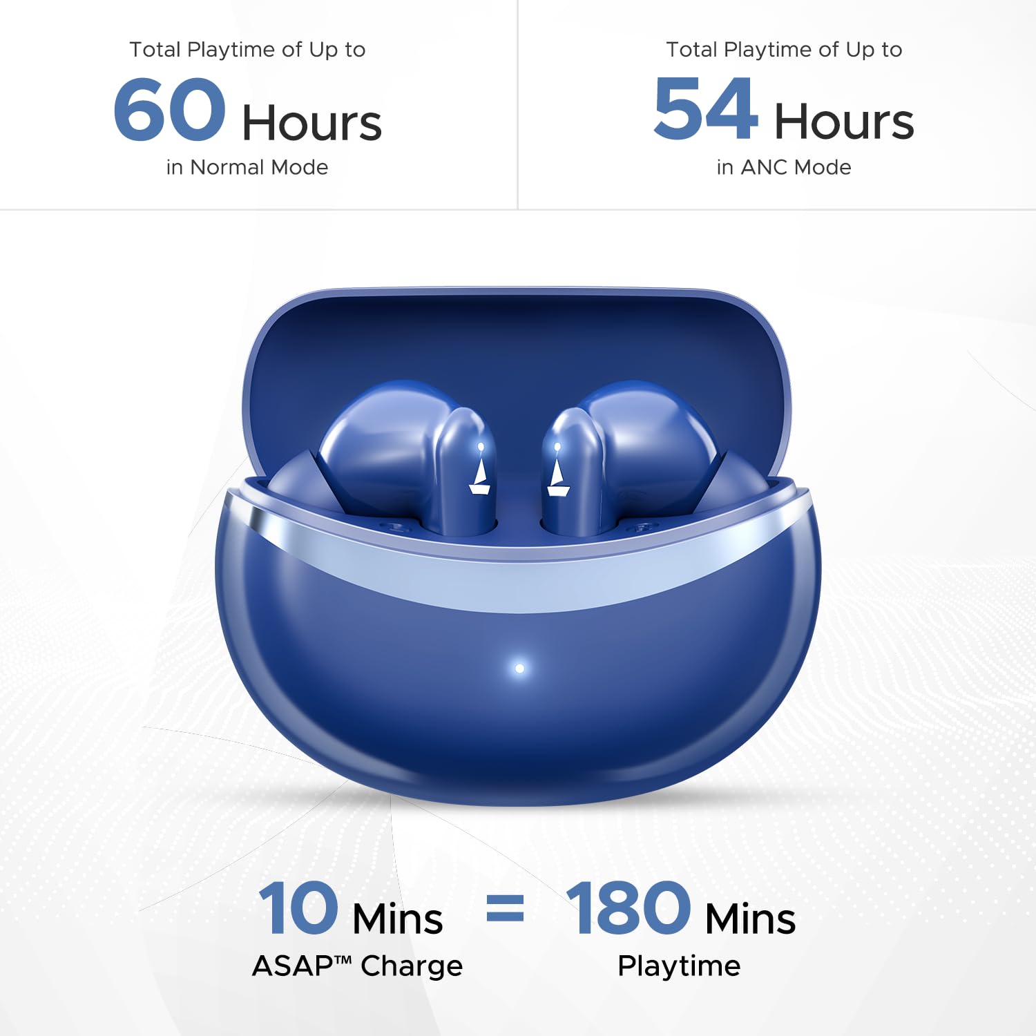 ASAP Charge: Charge your Airdopes 131 Elite ANC with the lightning-fast speed of ASAP Charge. Just charge these earbuds for 10 minutes and kickstart 180 minutes of audio entertainment.