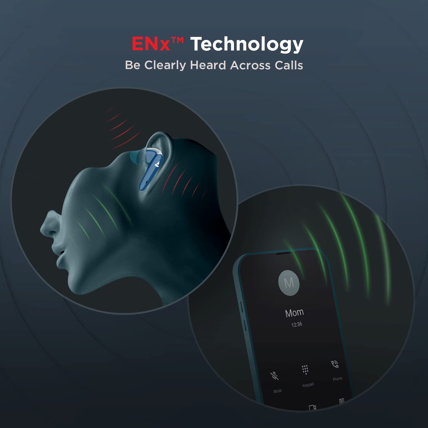 Clear Voice Calls- Be heard absolutely clear across voice calls without those usual interruptions, with the ENx Tech enabled Airdopes 181, that cancels out unwanted background noises during calls