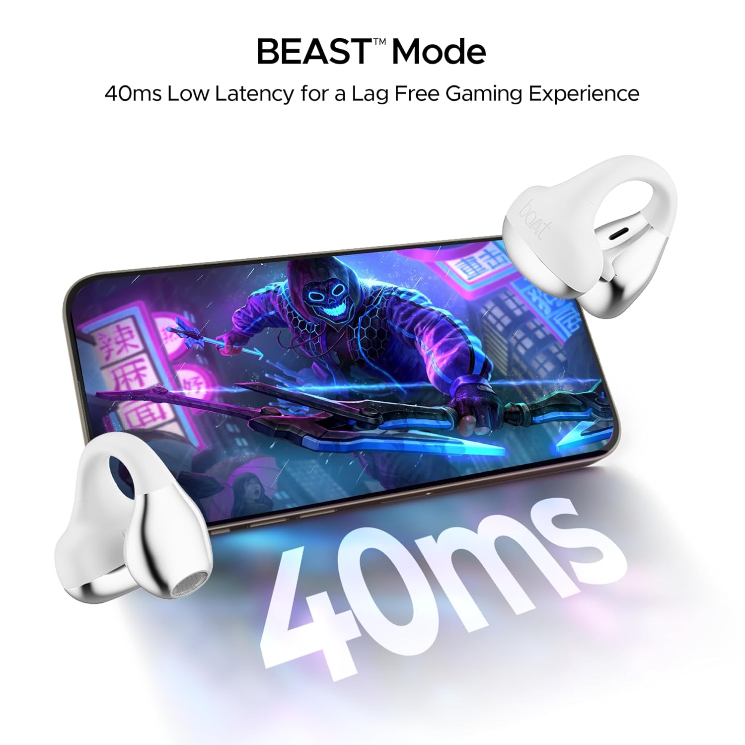 Clip-On Fit: Make heads turn with the exceptional boAt Airdopes Loop OWS Earbuds. The distinct clip-on design makes it effortless to groove on the move with a secure fit as you sing along to your favorite songs round-the-clock.