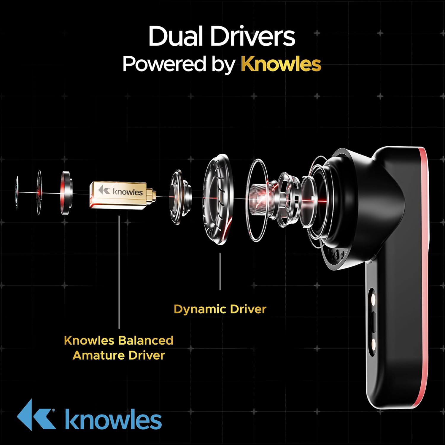 Knowles-Powered Dual Drivers with boAt HiFi Sound: Dive into the audio realm with the thumping boAt HiFi Sound from the 10 mm drivers of the boAt Nirvana X TWS Earbuds. Additionally, the two Knowles-enabled drivers reciprocate the frequency response of the preferred listening curve in your earbuds for a highly enjoyable audio experience.
