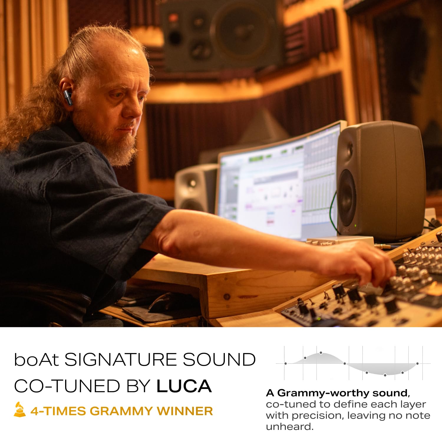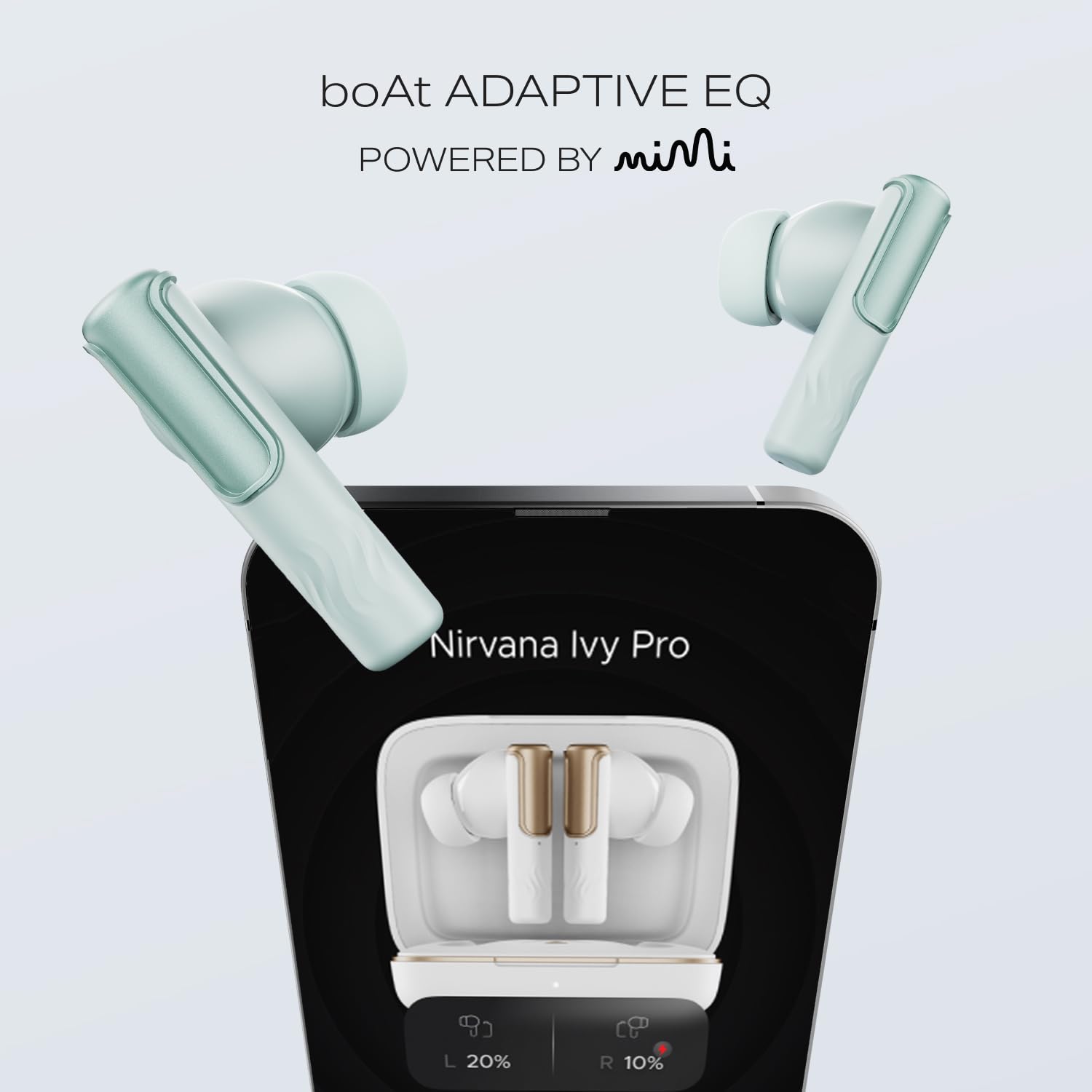 boAt Adaptive EQ by Mimi: Adaptive EQ provides tailored listening for songs, podcasts, series, and movies powered by Mimi Technologies. Configure your hearing profile on the boAt Hearables app and listen to unintelligible audio clearly.
