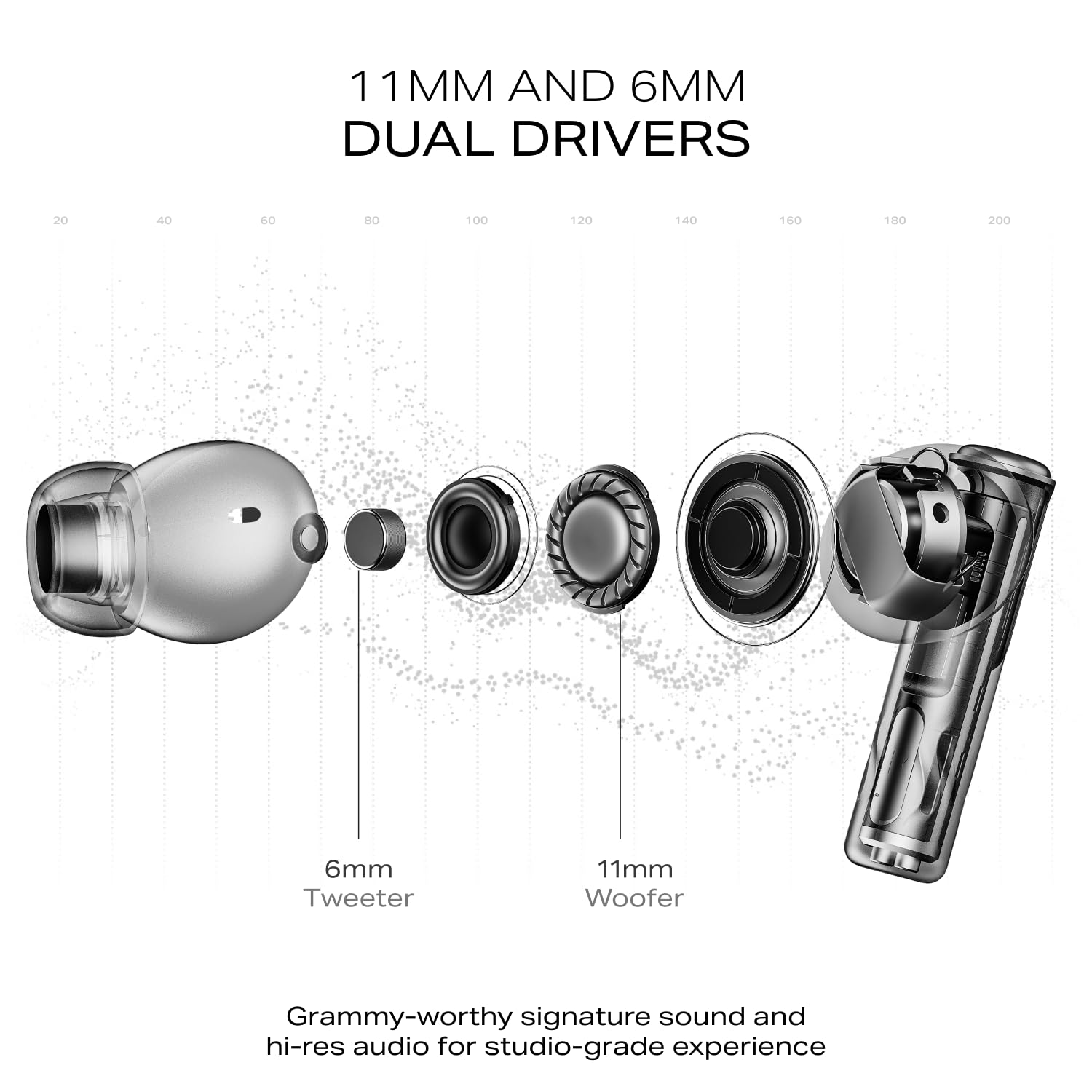 11mm+6mm Dual Drivers: Movies, podcasts, series, and more – dive into 24-bit audio from the dual 11mm and 6mm drivers.