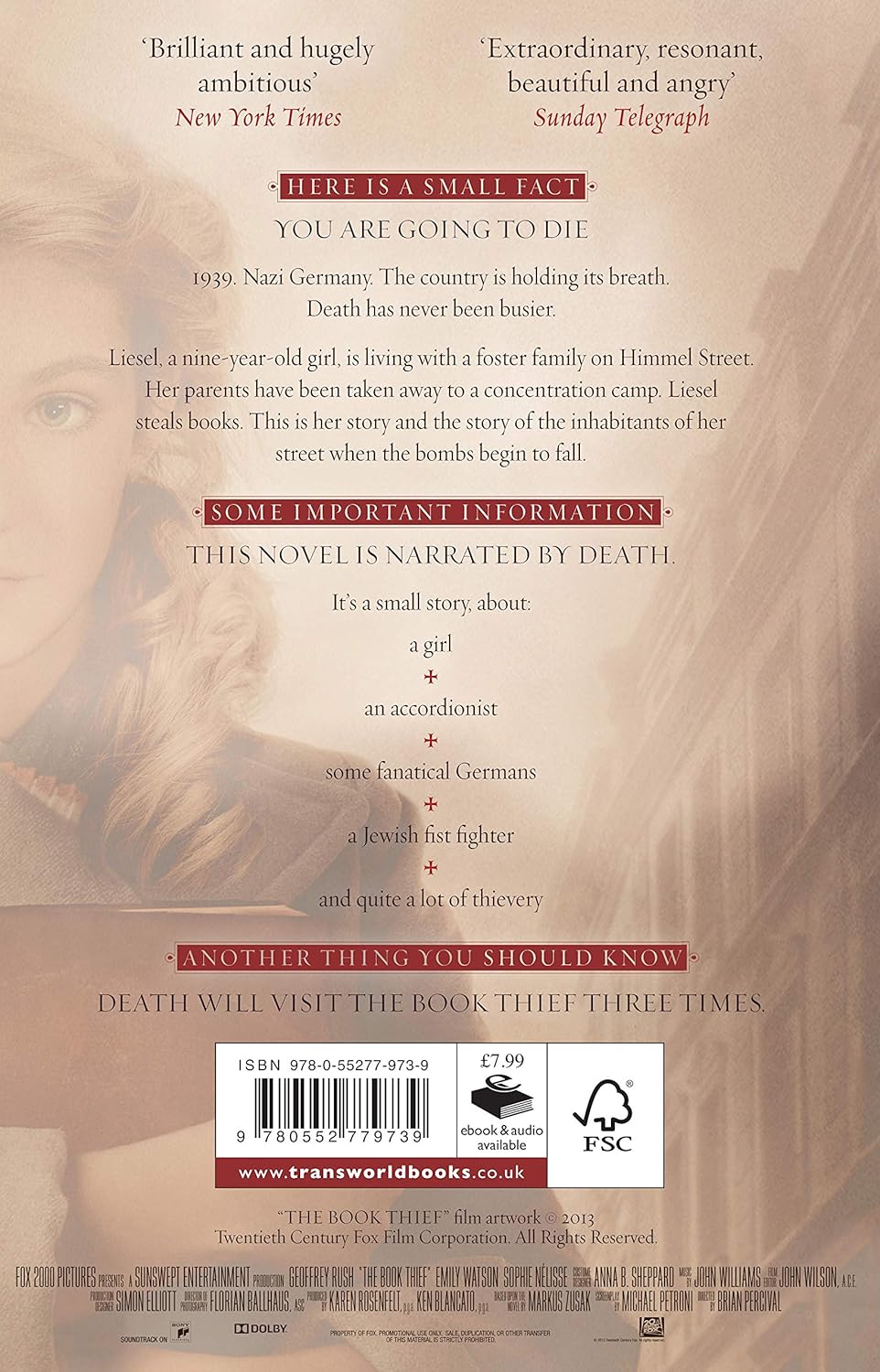 Life affirming, triumphant and tragic . . . masterfully told. . . but also a wonderful page-turner’ Guardian’Brilliant and hugely ambitious’ New York Times’Extraordinary’ Telegraph___HERE IS A SMALL FACT – YOU ARE GOING TO DIE1939. Nazi Germany. The country is holding its breath. Death has never been busier. Liesel, a nine-year-old girl, is living with a foster family on Himmel Street. Her parents have been taken away to a concentration camp. Liesel steals books. This is her story and the story of the inhabitants of her street when the bombs begin to fall. SOME IMPORTANT INFORMATION – THIS NOVEL IS NARRATED BY DEATH___Over 16 million copies sold worldwide. Now a major motion picture.