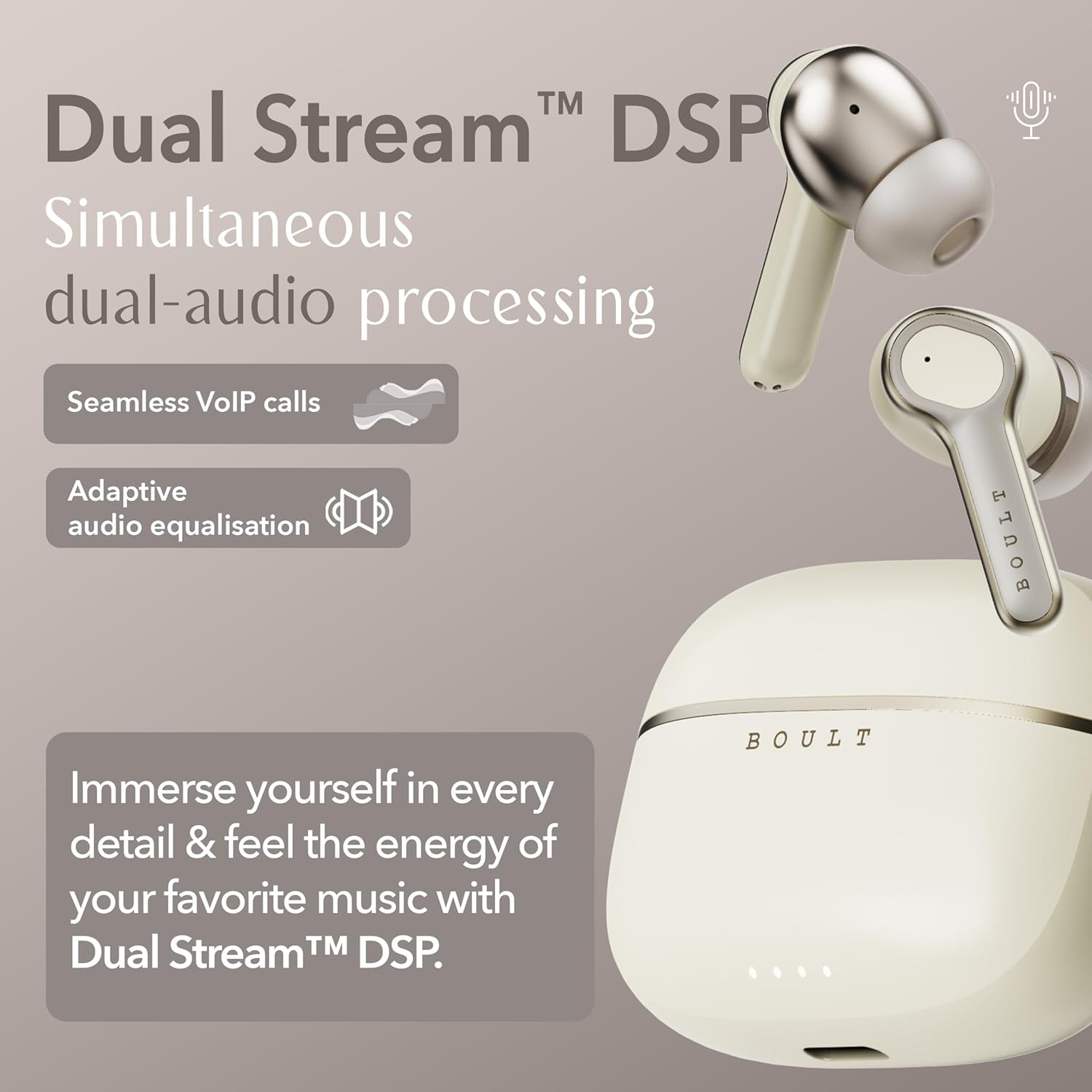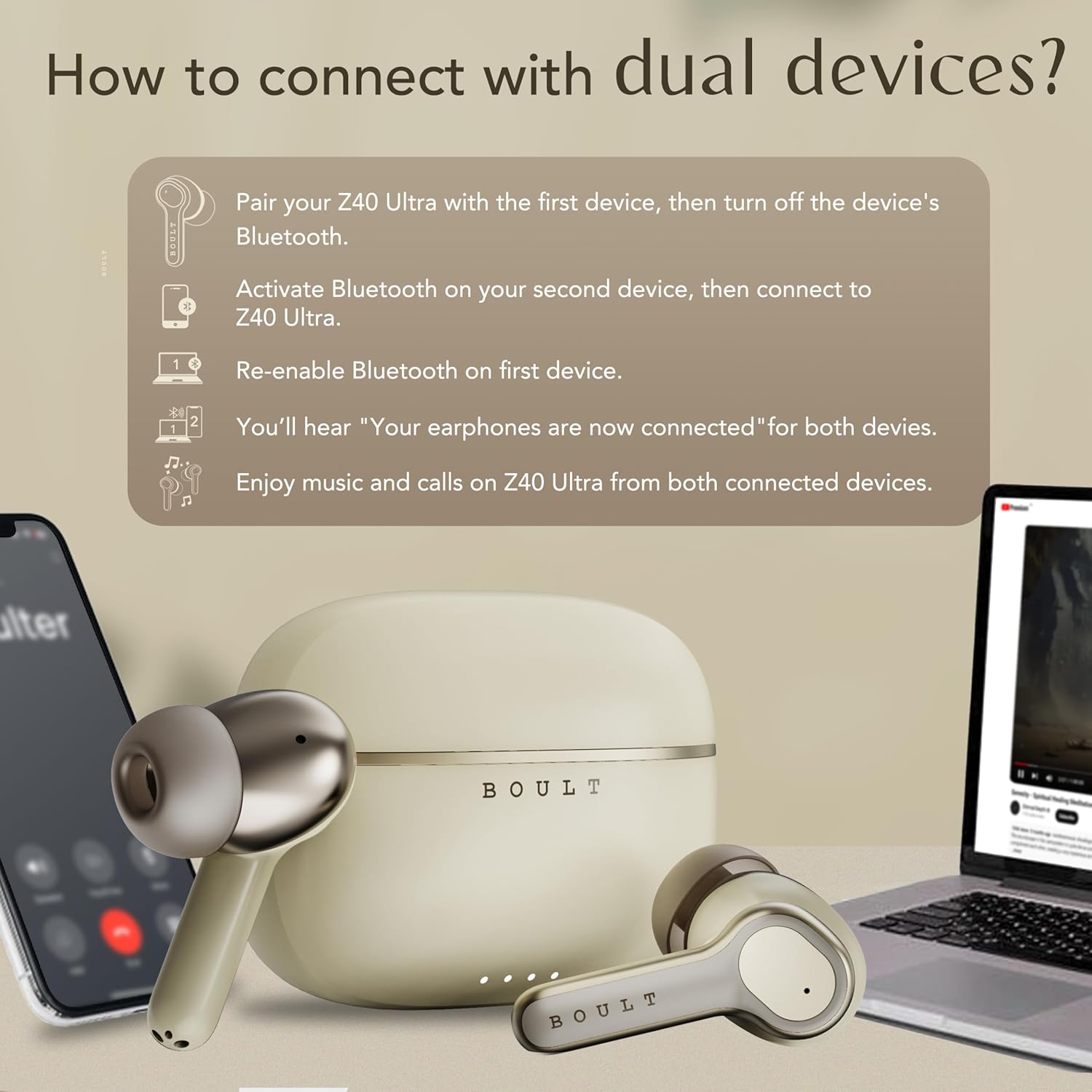 ✅ 100Hr Playtime: Embark on an extended audio journey with the Boult Z40 Ultra TWS with an astounding 100 hours of playtime. Dive into your favorite music, podcasts, and calls without interruption, ensuring that your headphones are always ready.