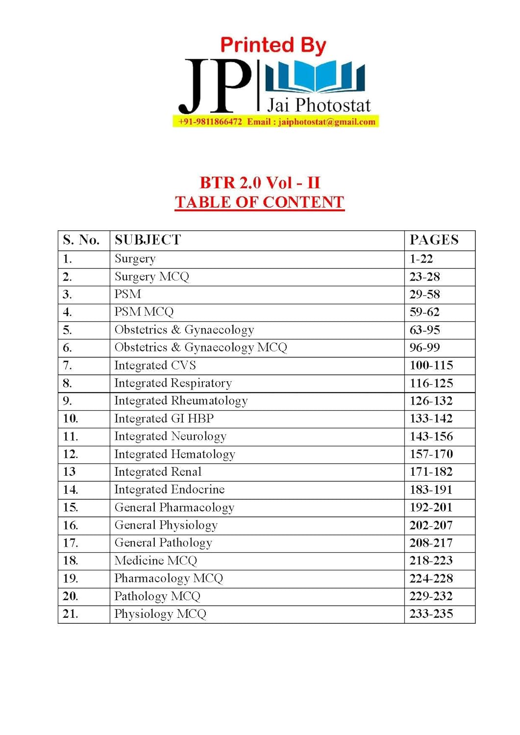 BTR 2.0 FILLED (ANNOTED WITH GOOD FONT )(DIGITAL HD COLOURED PRINT) BY ZAINAB VORA MAM JI ALL-19 SUBJECTS ARE ANNOTED WITH SPIRAL BINDING EDITION 2024-2025 The BTR 2.0 Medical Exam Books are a meticulously designed and comprehensive resource crafted to help medical students excel in their studies and ace highly competitive exams such as MBBS, NEET PG, and AIIMS. Whether you’re a medical student preparing for your university exams or an aspirant aiming for postgraduate medical entrance tests, this guide is tailored to meet the needs of those looking to master the complexities of the medical syllabus. The BTR 2.0 ANNOTED Medical Exam Books provide extensive coverage of all the essential subjects that medical students need to study. It covers foundational topics like anatomy, physiology, and biochemistry, as well as more advanced subjects such as pathology, pharmacology, and microbiology. Additionally, clinical subjects like surgery, obstetrics, and gynecology are thoroughly detailed. Each subject is structured to provide a deep understanding of core concepts while emphasizing high-yield topics that are frequently tested in exams like NEET PG and AIIMS.This detailed syllabus coverage allows students to review all the relevant materials in one place, saving time and ensuring that nothing is overlooked during preparation.